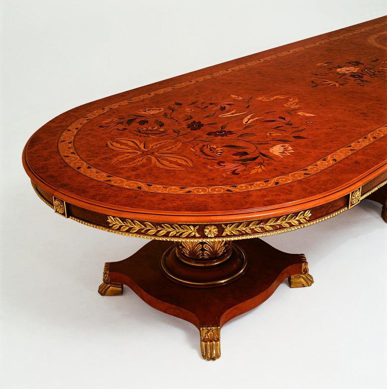 the root of the maple with inlays of various woods, antique gold foil. The model is made in classic style. Colours in stock.