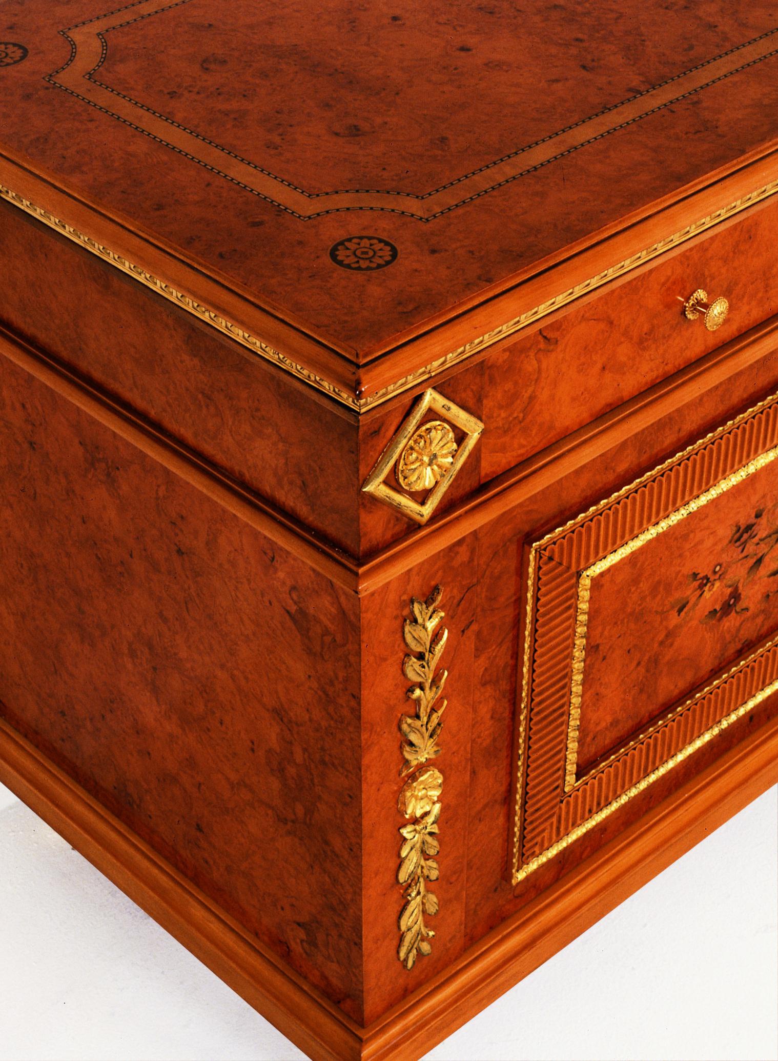 Dresser S. I. P. ARR 09 from Italian manufacturer Colombo Stile. The case is natural wood. Finish: the root of the maple with inlays of various woods, antique gold foil. The model is made in classic style. Colours in stock.