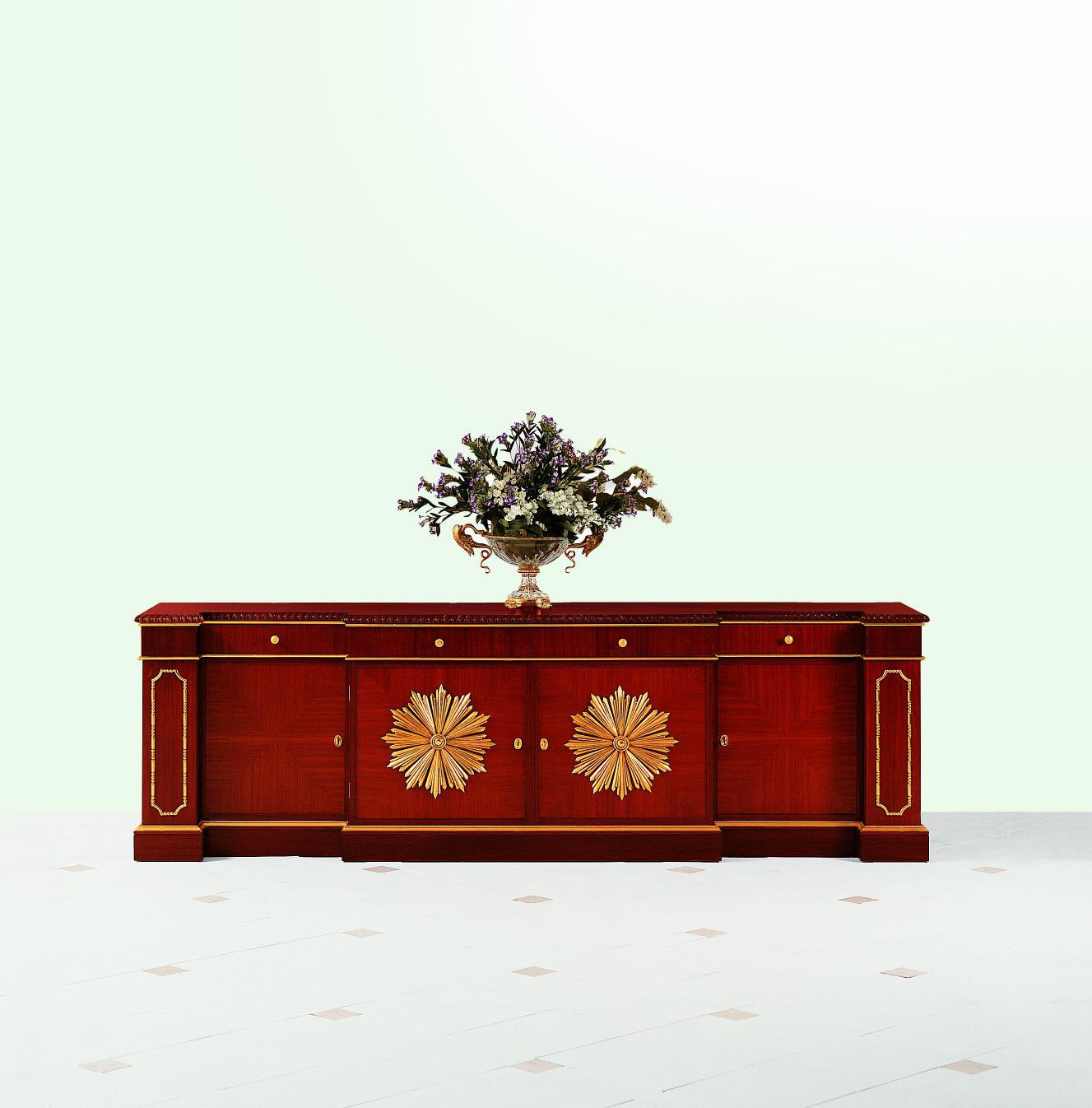 Dresser S. I. P. ARR 09 from Italian manufacturer Colombo Stile. The case is natural wood. Finish: mahogany and gold leaf. Possible lacquer imitation. The model is made in classic style. Colours in stock.