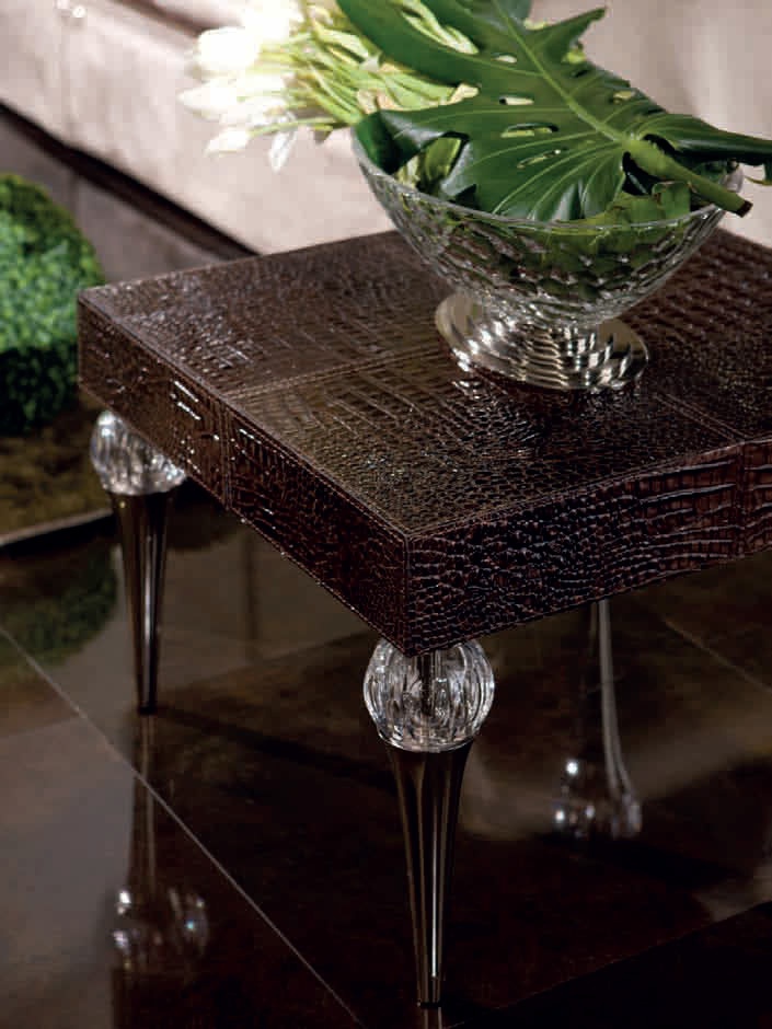 countertop : wood countertop : leather legs: brass decorative elements : crystal |