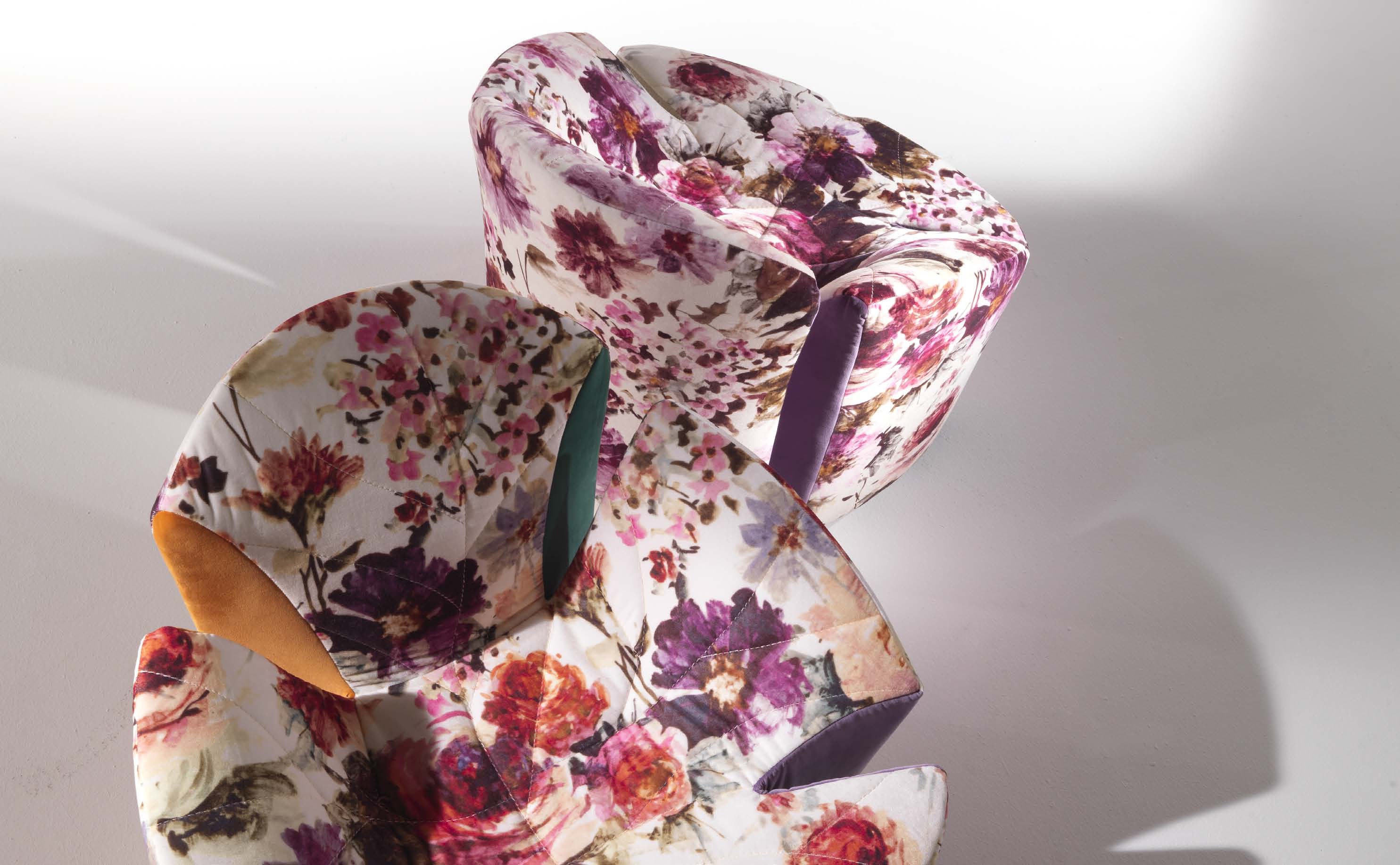 Foglia chair from the Italian manufacturer JC Passion. Filler - foam, upholstery - textiles from a range of campaigns. Collection Of Romantic Folies. The chair is made in the shape of a flower. A charming choice for a living room in art Deco style. The design of complementary decorative pillows.