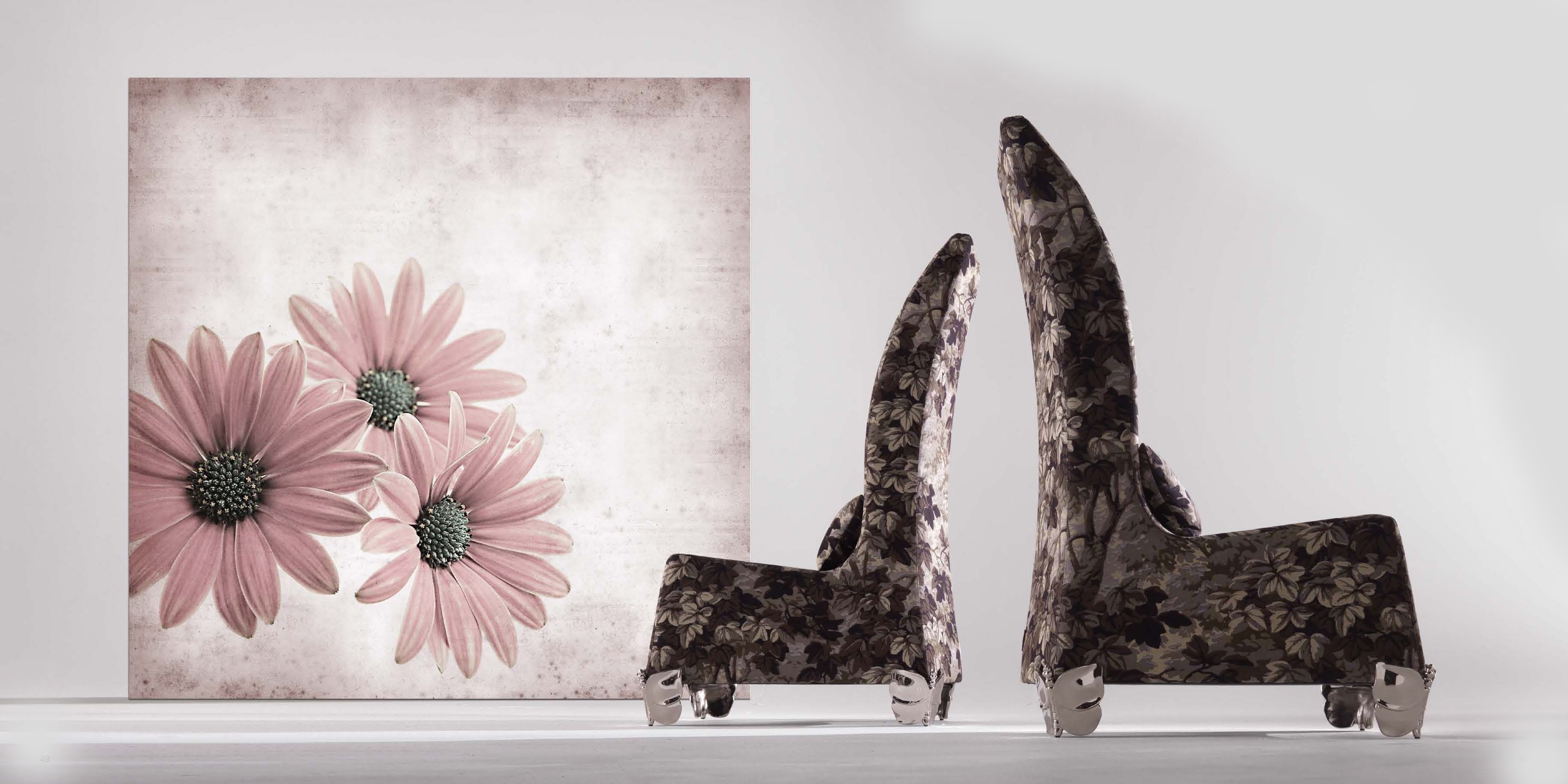 Chair in Butterfly fabric from Italian manufacturer of design furniture JC Passion in the art Deco style. The frame is made from solid wood. Legs made of brass, available in various finishes. Upholstery - textiles from the company portfolio. Collection Of Romantic Folies