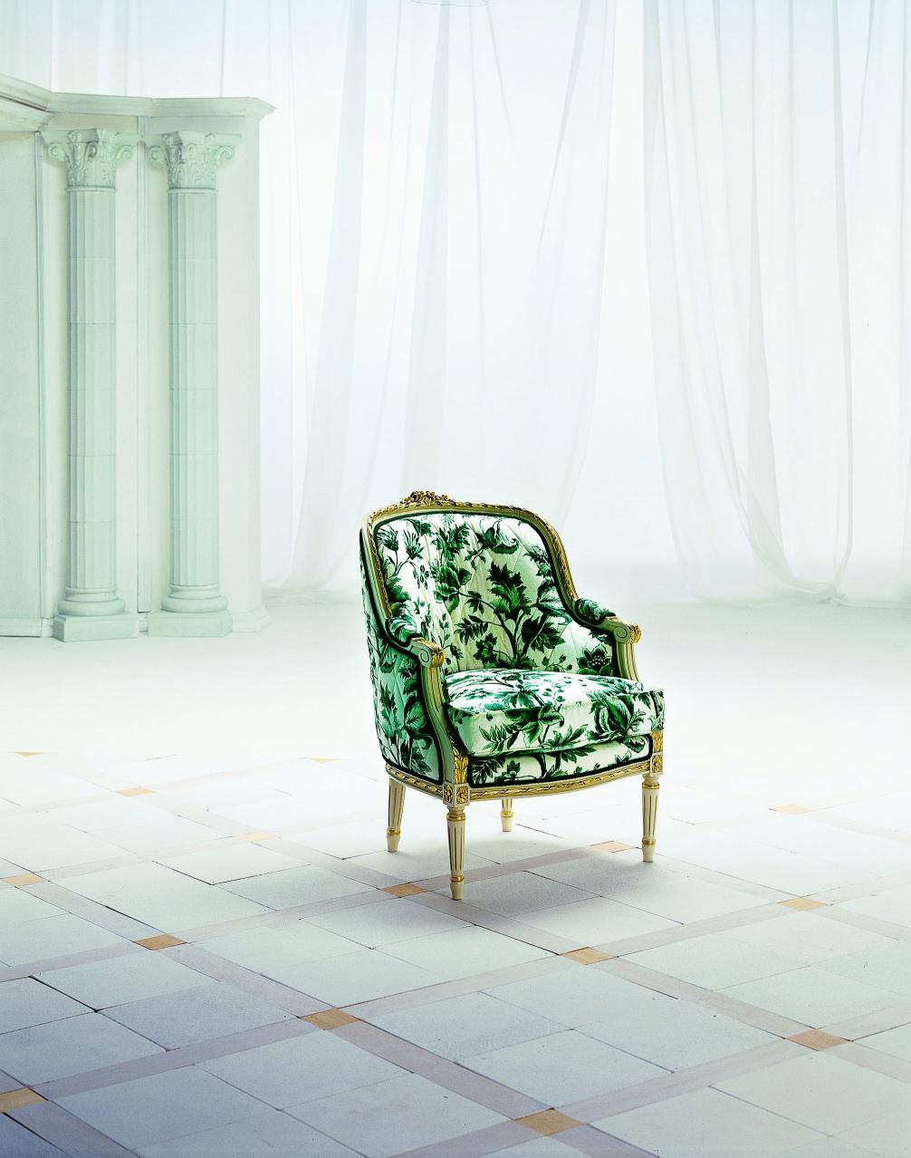 Chair S. I. P. ARR 09 from Italian manufacturer Colombo Stile. The frame is natural wood. Finish: lacquer and gold foil. Filler foam. Stylish and comfortable furniture for the living room. stylish and comfortable furniture for bathroom