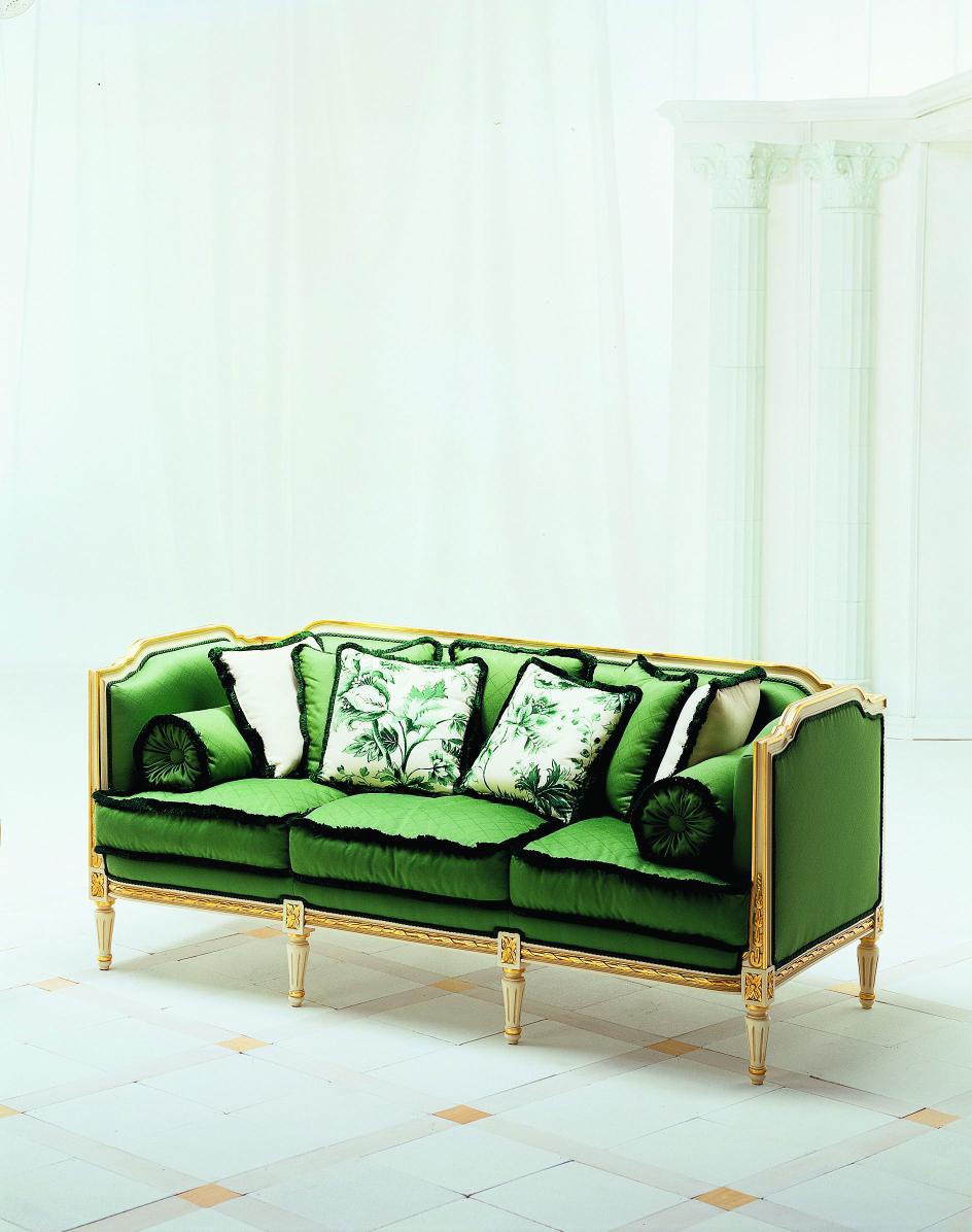 Three-seater sofa on tall carved legs S. I. P. ARR 09, Colombo Stile