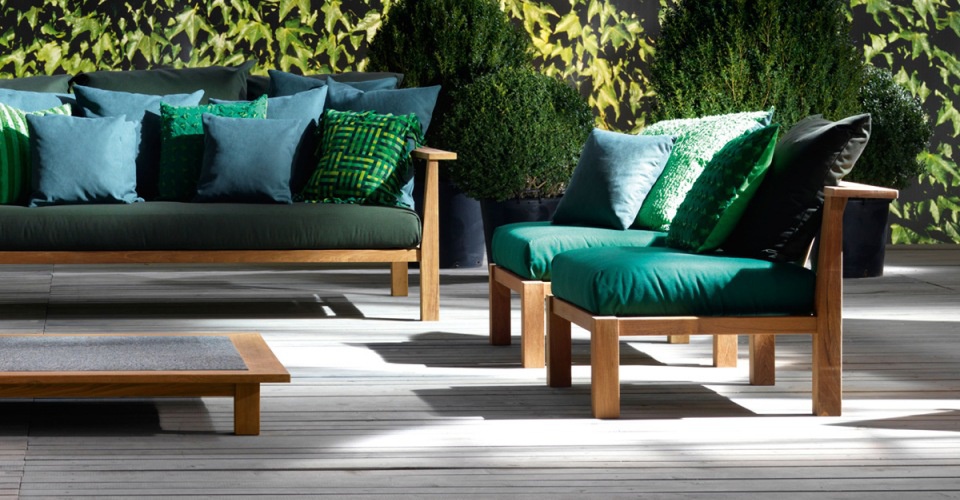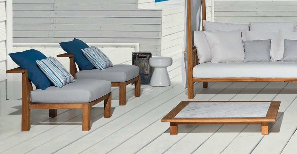 The armchair InOut 06 from Italian manufacturer Gervasoni InOut collection. The frame is made of teak. Upholstery - textiles. Armchair in a contemporary style. Colours in stock.