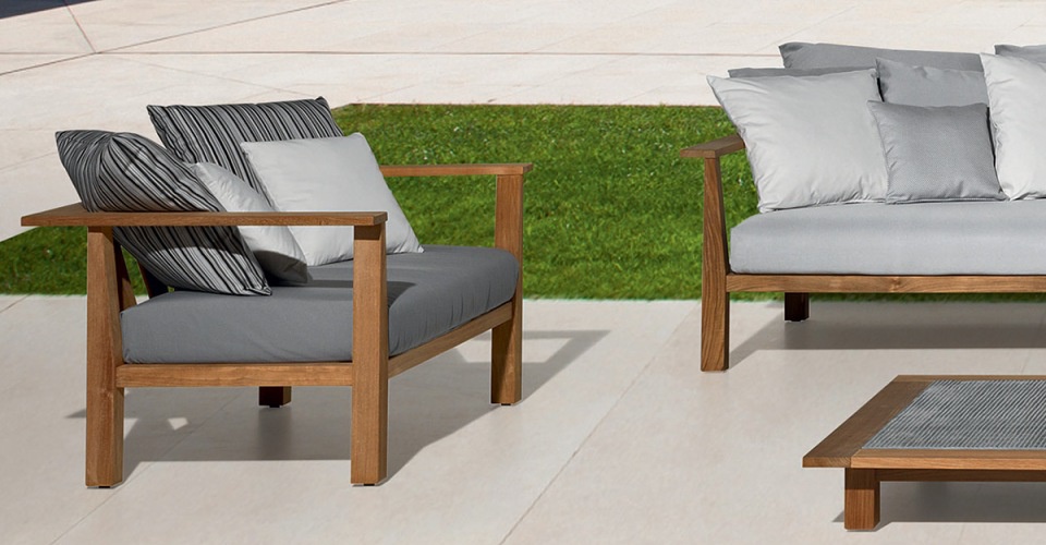 02 InOut sofa from Italian manufacturer Gervasoni InOut collection. The frame is made of teak. Upholstery - textiles from the company portfolio. The sofa is designed in modern style. Colours in stock.
