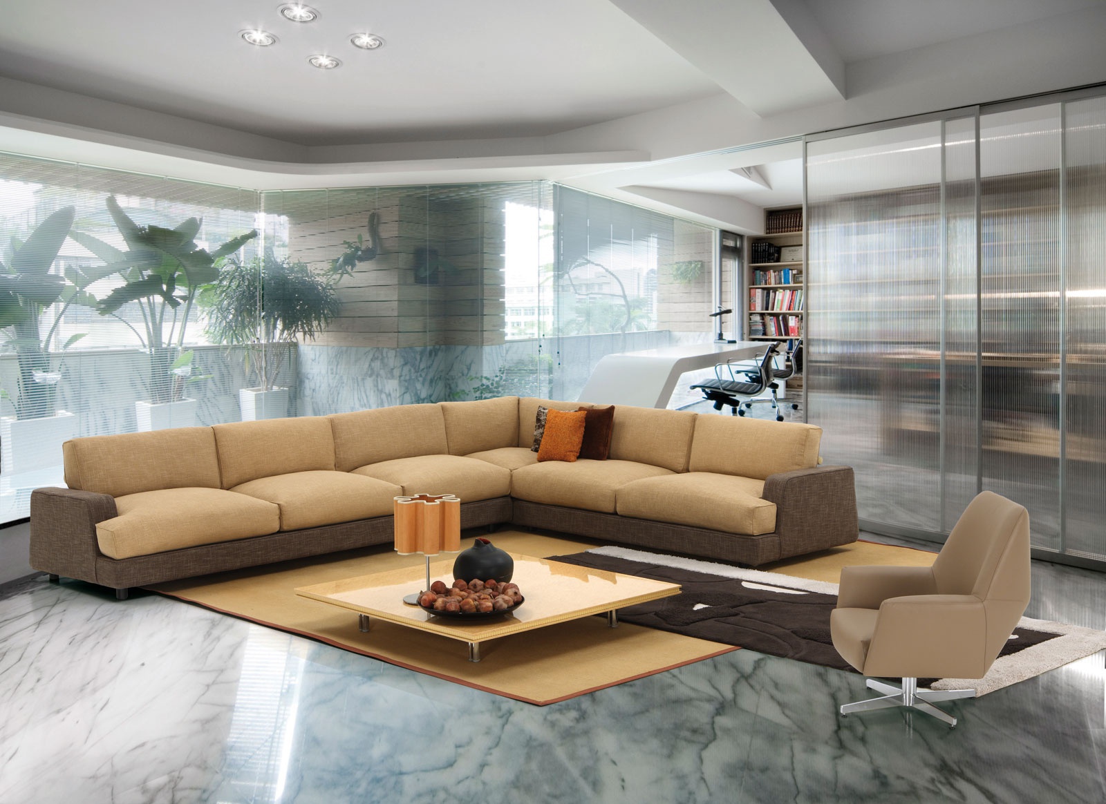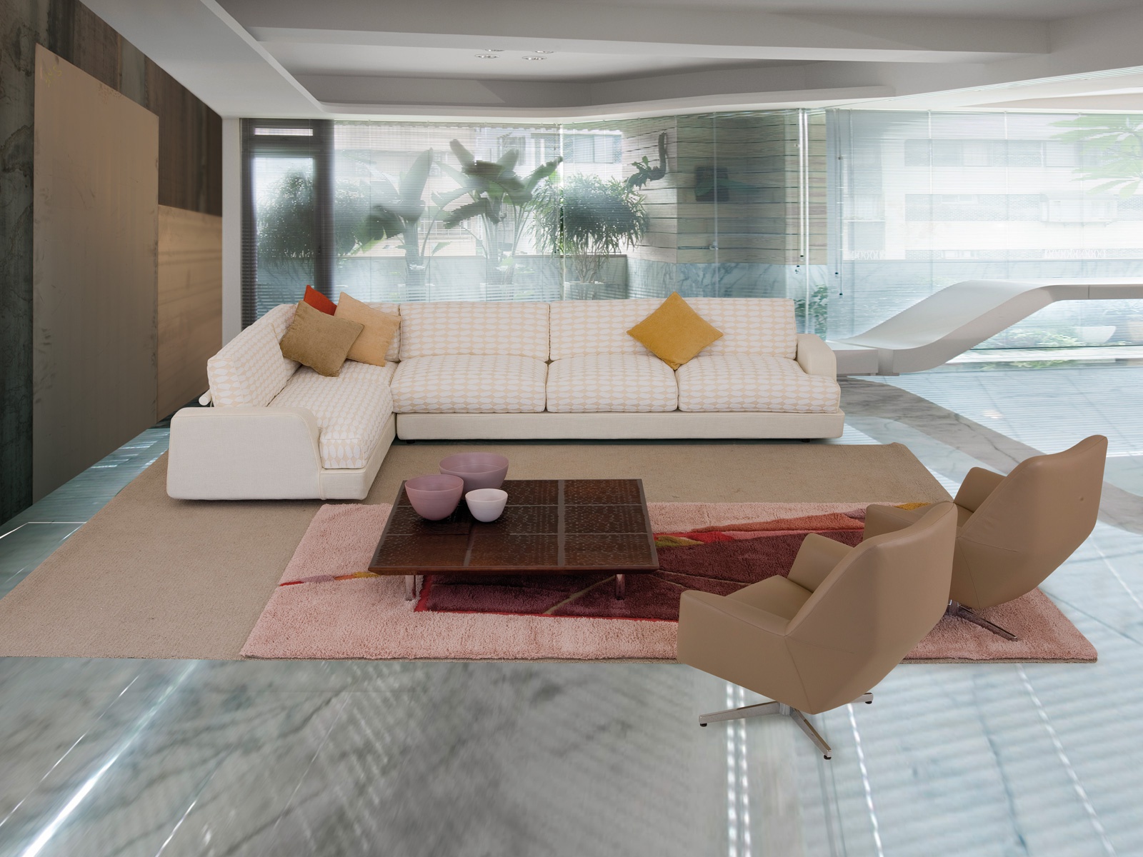 The Vision modular corner sofa from Italian manufacturer Il Loft. Model on a low base with removable cushions of backrests and seats. Made with a frame made of natural wood. Upholstery textiles or leather of various colors from the collection of the factory. Filled with non-deformable polyurethane foam with polyester fiber. A lovely choice for the living room in a modern style.