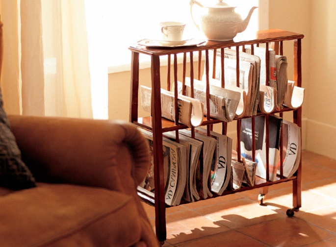 Rack for Newspapers Office Design Italian manufacturer Bizzotto. A model with wheels, the frame is made of wood. Model color is brown, lacquered, color to be selected from the range of the factory. Perfectly complement the classic interior of the living room or study.