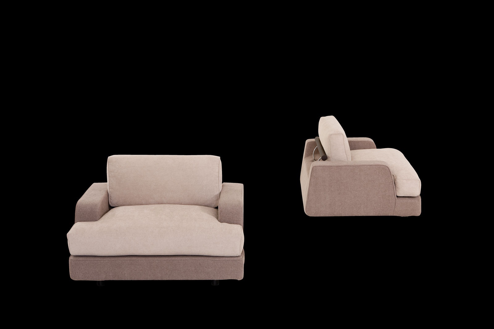 Vision armchair by Italian manufacturer Il Loft. Model on a low base with removable back cushions and seats. Made with a frame made of natural wood. Upholstery of textile or leather. Filled with non-deformable polyurethane foam with polyester. A lovely choice for modern interiors.