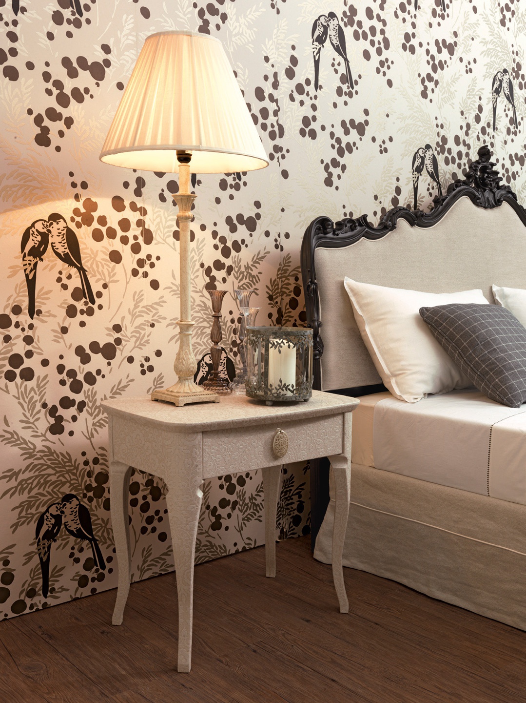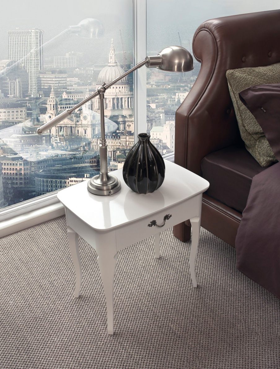 Vittorio bedside table from Italian producer Galimberti Nino. The model is made of solid Santos rosewood or ash. Internal finishing of technical fabrics. Handle: Nickel with inserts of precious varieties of natural horn, or in a classic style. Bedside table with drawer will certainly decorate a bedroom in a classic style.