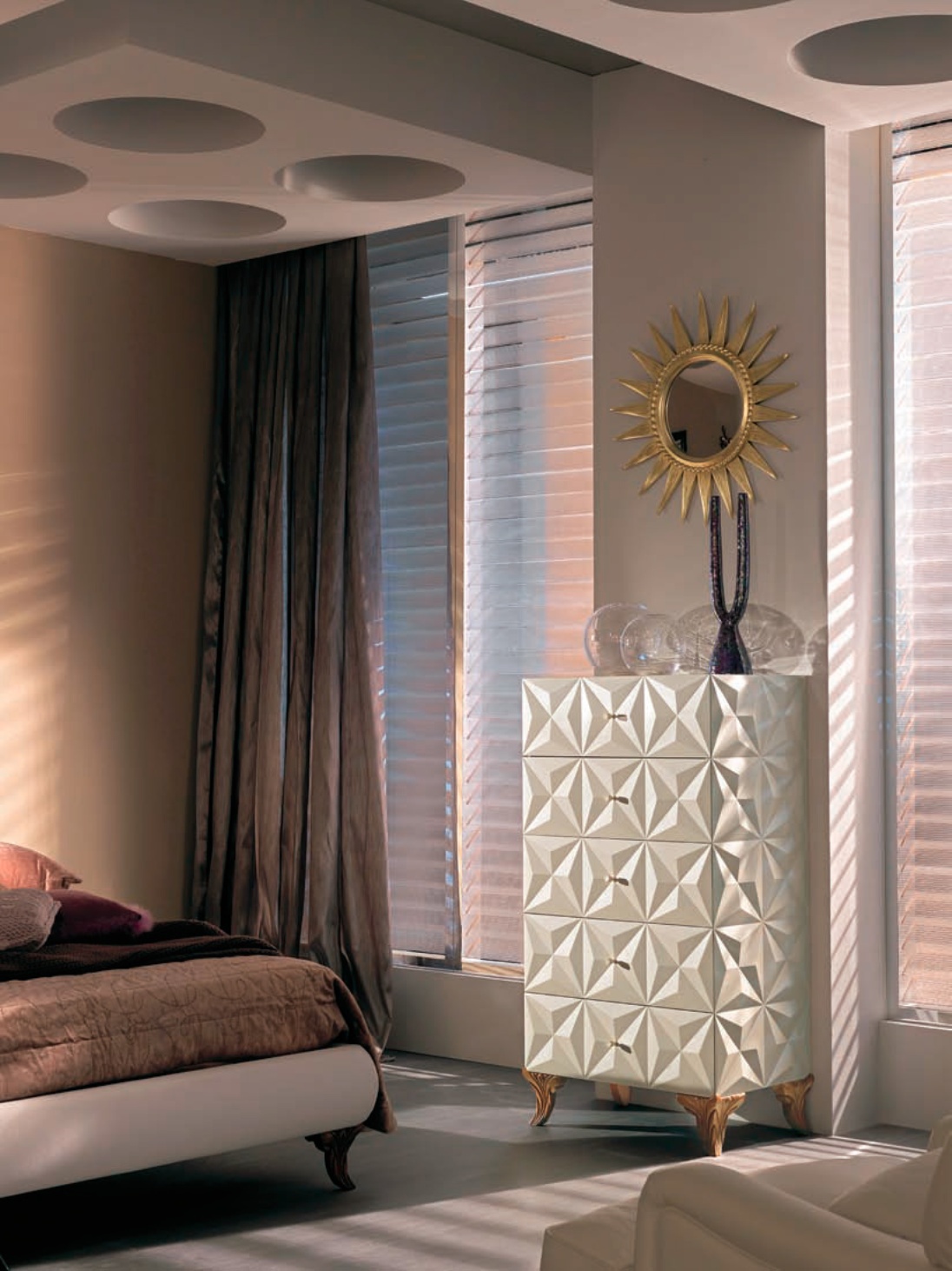 Dresser with five drawers Diamond Italian manufacturer Bizzotto. Model for small feet. Color in white or a choice from the directory of the company. Framing furniture like the engraving of a diamond. Perfectly complement modern interior of a bedroom or a dressing room in a glamorous style.