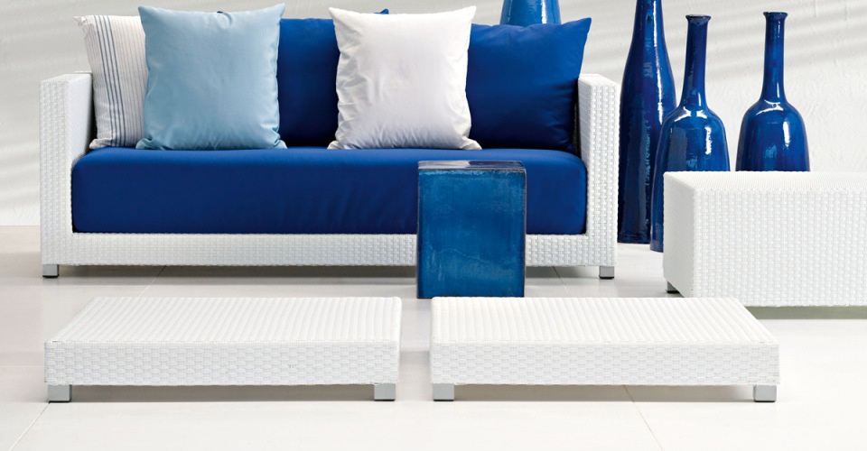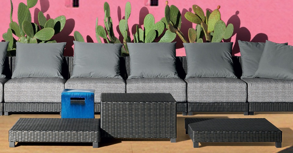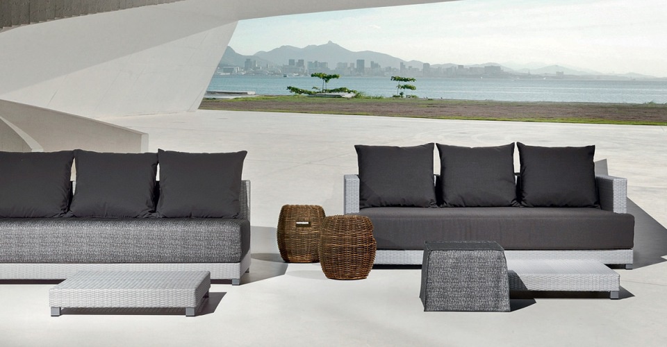 InOut 211 coffee table from Italian manufacturer Gervasoni. The frame is aluminum, the wicker body is made of polyethylene tapes. Colours in stock.
