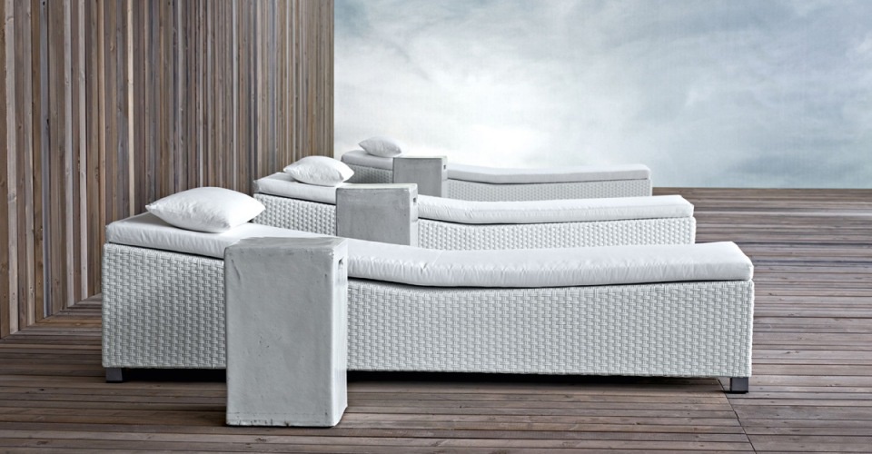 The InOut 282 daybed from Italian manufacturer Gervasoni. A collection of furniture for outdoor use InOut. The frame is aluminum, the body is woven from polyethylene tapes. Colours in stock.