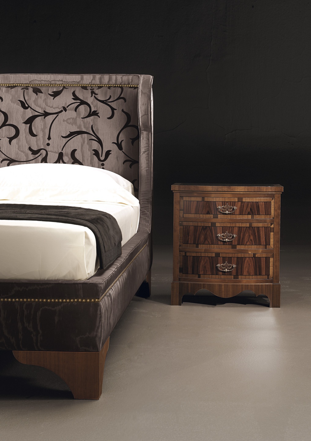 Table Argegno from the Italian producer Galimberti Nino. Model wood, finish - veneer with inlaid palissandre, fittings - brass. Model bedside figure on carved supports. A perfect item for bedroom in art Deco style.