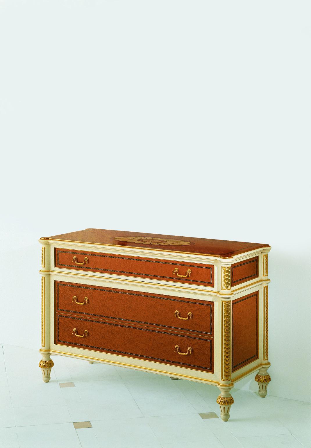 The dresser S. I. P. ARR 09 from Italian manufacturer Colombo Stile. Finish: lacquer, tempera, gold leaf, gold-plated brass overlay. The style is classic. The case is natural wood. Decorative elements of handwork. Colours in stock.