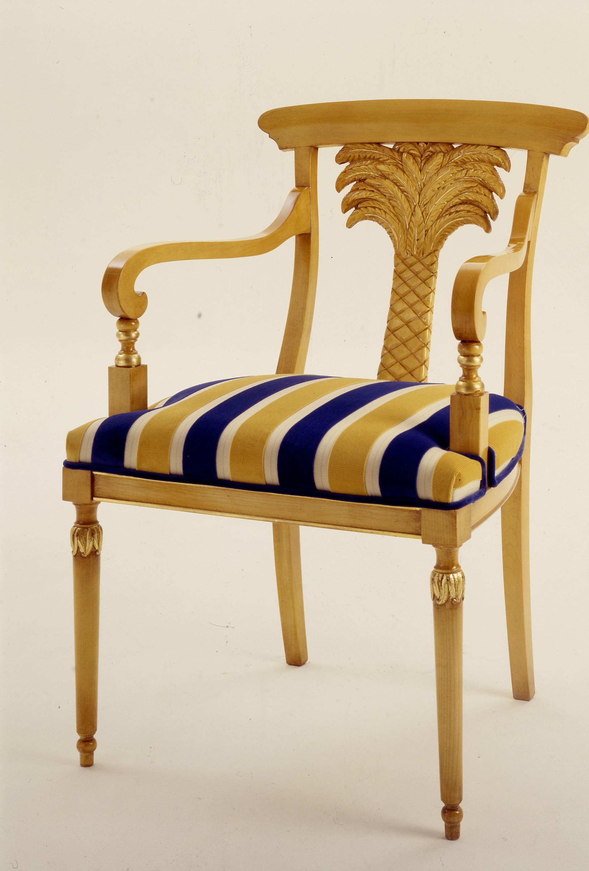 Chair with armrests The Orientalists from the Italian manufacturer Colombo Stile. The frame is natural wood. Finish - lacquer, gilding. Upholstery - textiles. Decorative elements of handwork. The model is made in classic style. Colours in stock.