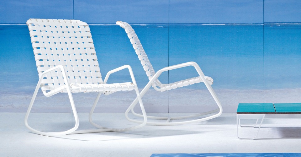 Rocking chair InOut 809 F from Italian manufacturer Gervasoni. The frame is aluminium, the backrest and the seat is PVC. Excellent variety for garden or pool. Colours in stock.