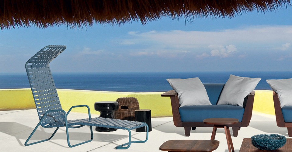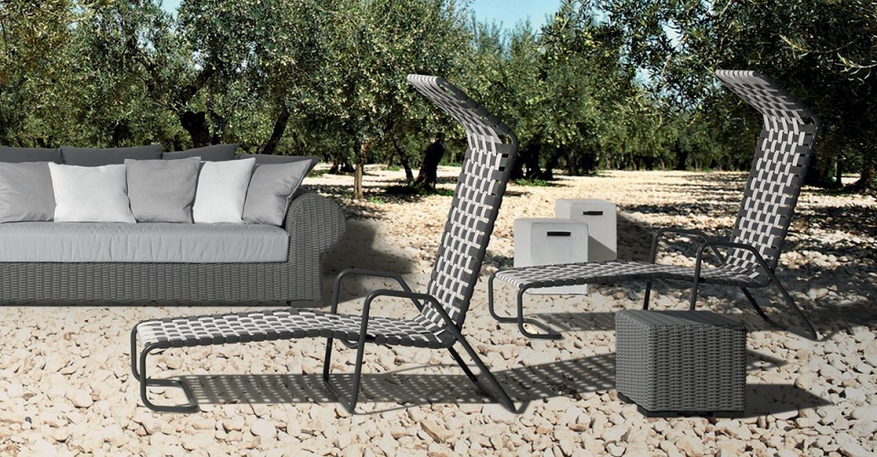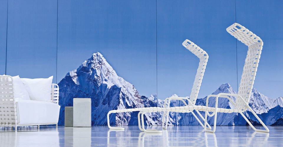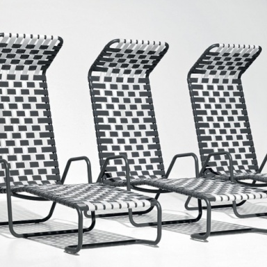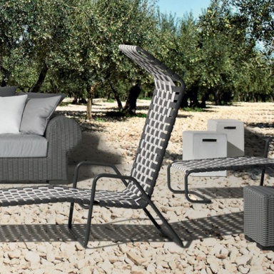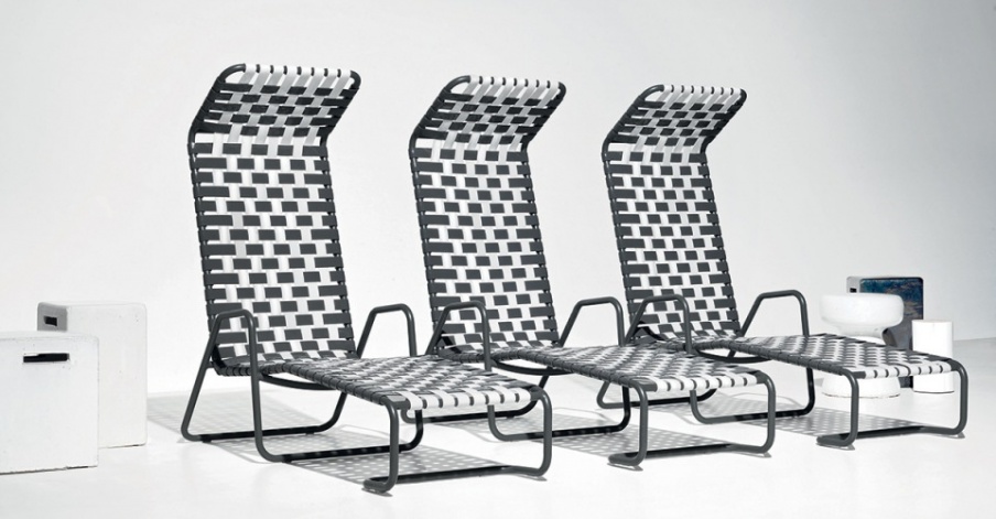 The lounger InOut 881 F from Italian manufacturer Gervasoni. The frame is aluminium, the backrest and the seat is PVC. Excellent variety for garden or pool. Colours in stock.