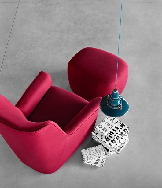 The high-backed chair Dialogo by Italian manufacturer Pianca. Modern style furniture with a bright palette of colors, the presented model in black, red and khaki color. The chair in the hidden frame. Available version in leather / textile upholstery. For more comfort, the model is supplemented with a pillow under the lower back in the fabric cover.