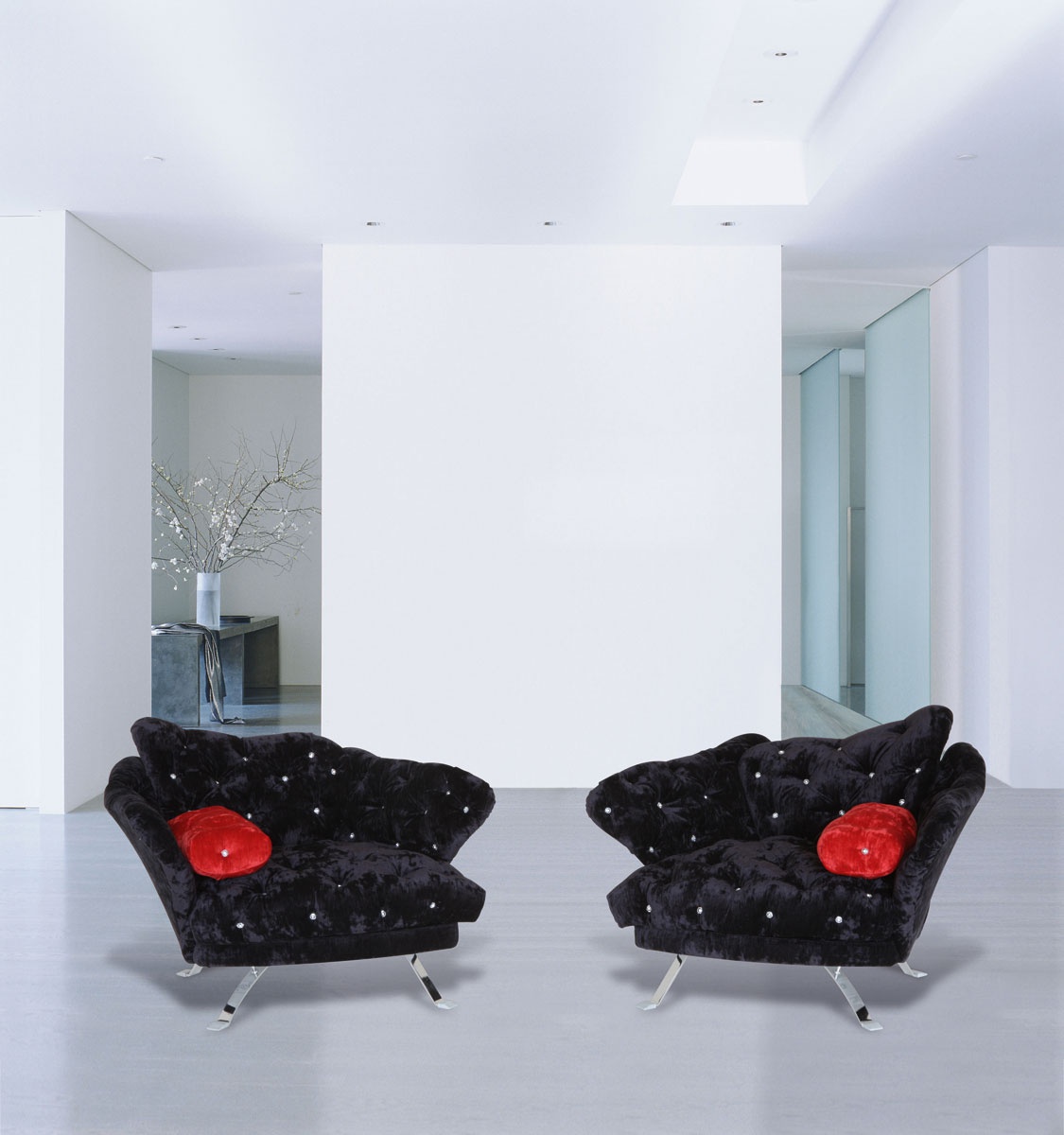 The Flower Capitonne chair from the Italian manufacturer ll Loft. The frame is made of wood and metal, upholstery - cloth/leather from a range of the manufacturer. Filled with non-deformable polyurethane foam with polyester fiber. The design complements the decorative stitch Capito. A perfect choice for a living room in modern style. Color products from the catalog company.