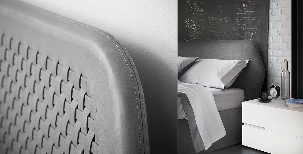 Bed Trama from the Italian manufacturer Pianca. This model is available in three types: one is solid wood, in natural color and carved headboard; the other is covered with textile fabric or leather; the third with the headboard decorated by complex weaving their leather belts. This model bed is made in fusion style. Color in stock. Magic, adventure, love and destiny are part of a big story, a sub-designer in this bedroom.