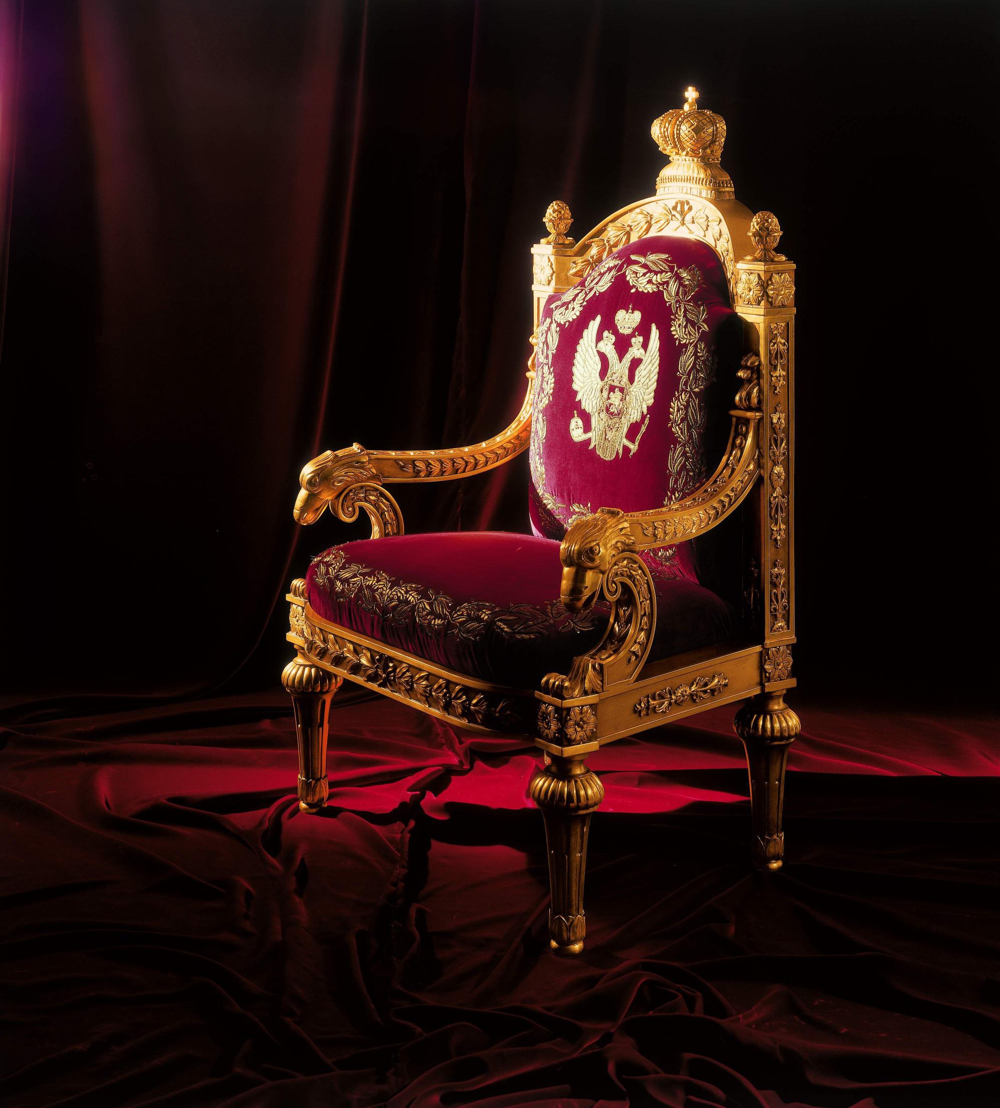 Zar armchair from Italian manufacturer Colombo Stile. Frame - birch, hand carved, lathe work, gilding, velvet, embroidery with gold and silver threads. The model is made in classic style. Colours in stock.