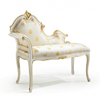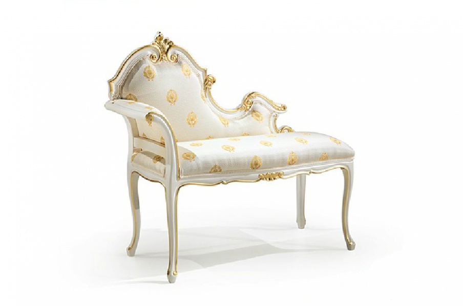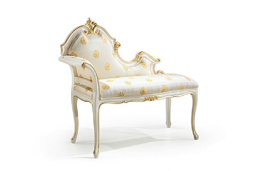 Bench from the Italian manufacturer Angelo Cappellini. Model legs, with the right armrest, is made with a frame made of wood. The back is curly edged carved frame. Decoration is the decorative carving and gilding. Finish offered from the company portfolio. The upholstery is made of textile.