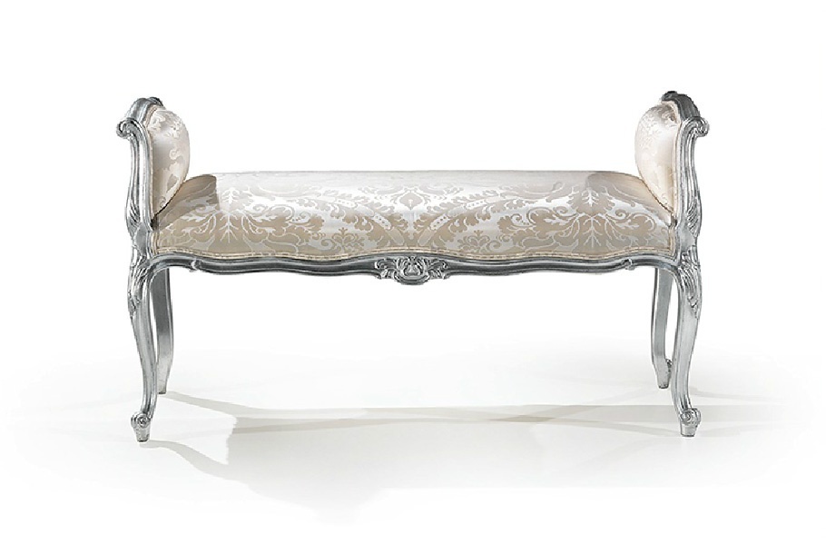 Bench from the Italian manufacturer Angelo Cappellini. The model with armrests, made with a frame made of wood. The ornament serves as a decorative thread. Finish offered under silver or from the company portfolio. The upholstery is made of textile cloth.