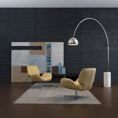The rotating armchair Poltroncina Helen from the Italian manufacturer Il Loft. Model with metal legs. The upholstery is leather or textile. Filler-polyurethane foam. Model of modern design with various colors from the collection of the factory.