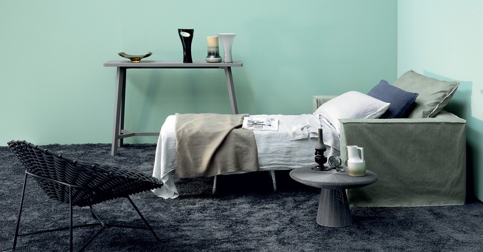 Chair bed Brick 11 from Italian manufacturer Gervasoni. Metal frame, polyurethane foam upholstery. Removable cover. Colours in stock.