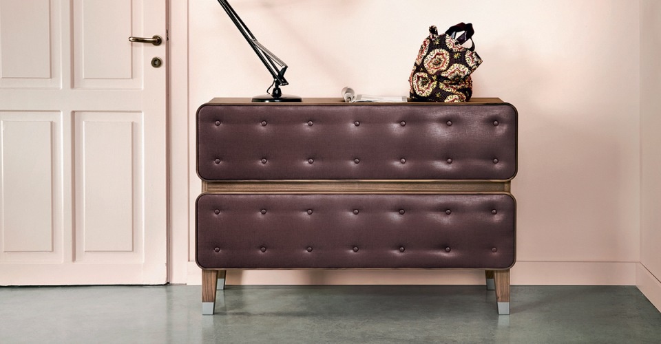 Dresser Brick from Italian manufacturer Gervasoni. Model of the collection Brick. The body is made of American walnut. The boxes in fabric. Legs American walnut with bits of aluminum. The choice of color in stock.