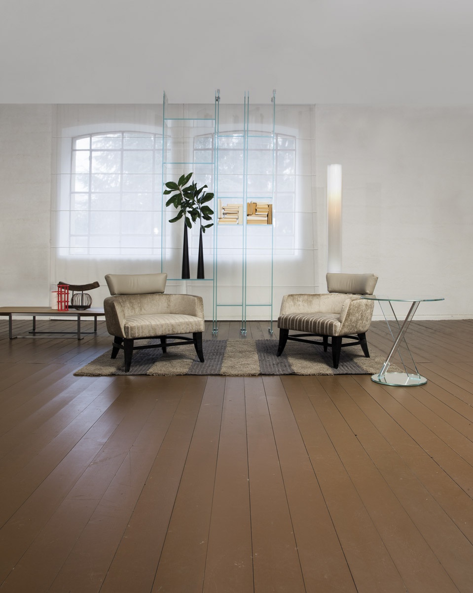 Naxos armchair with a wooden frame from the Italian manufacturer Il Loft. The legs are made of wood. A model with semicircular backrest upholstered with textile or leather. Filler-polyurethane foam. Color models in the catalog from the manufacturer. The modern design.