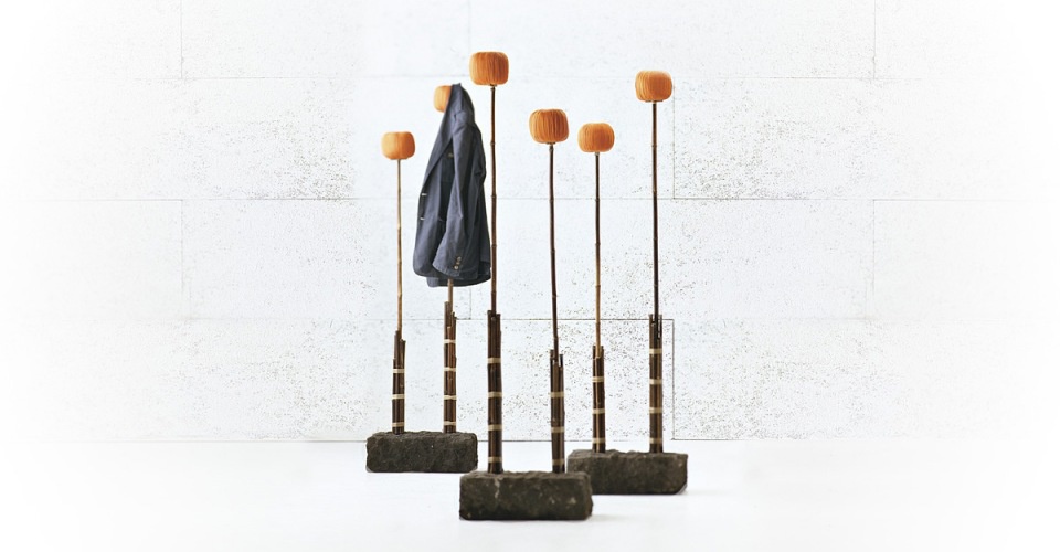 Hanger Black from Italian manufacturer Gervasoni. Materials - bamboo with stone base, cotton (orange POM-poms). Model of the collection Black, made in a modern style. Colours in stock.