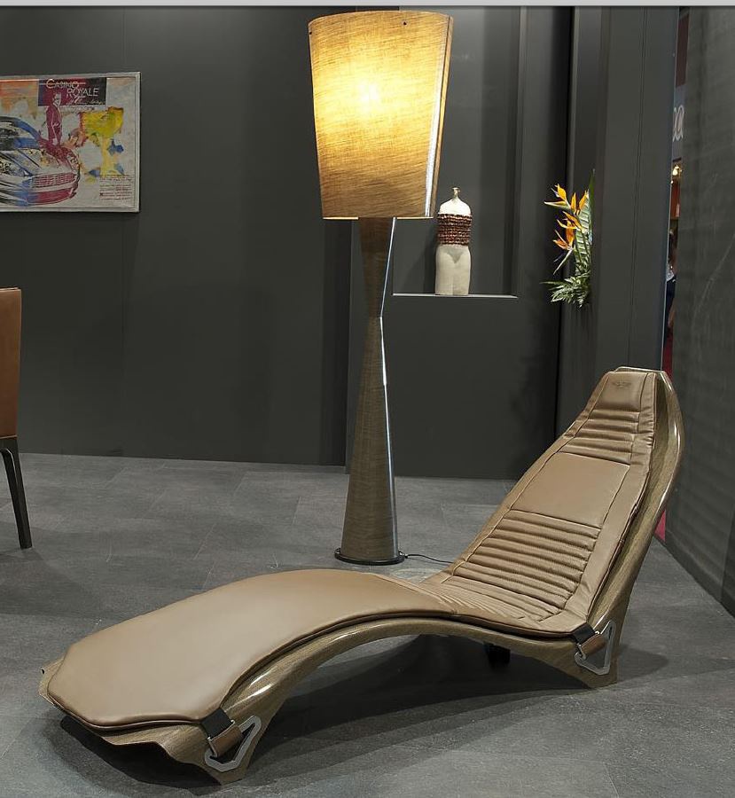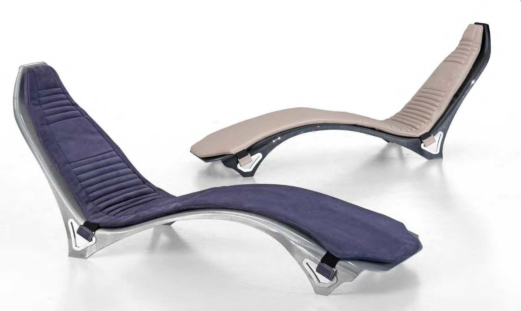 A chaise longue V007 from the Italian manufacturer Formitalia. The basis of carbon fiber, upholstery - leather, other choices are possible materials. Offers a wide range of colors.