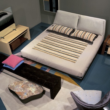 Double bed Bristol from the Italian manufacturer Il Loft. Frame metal covered with leather or textiles. Legs made from steel surface - glossy chromium. The model with upholstered adjustable headboard. Filler - polyurethane foam. Option color and texture to choose from a collection company. The modern design.