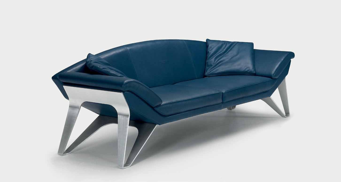 Double V010 sofa from Italian manufacturer Formitalia. The frame is made of aluminum. Upholstery - leather from the company portfolio. Offers a wide range of colors.