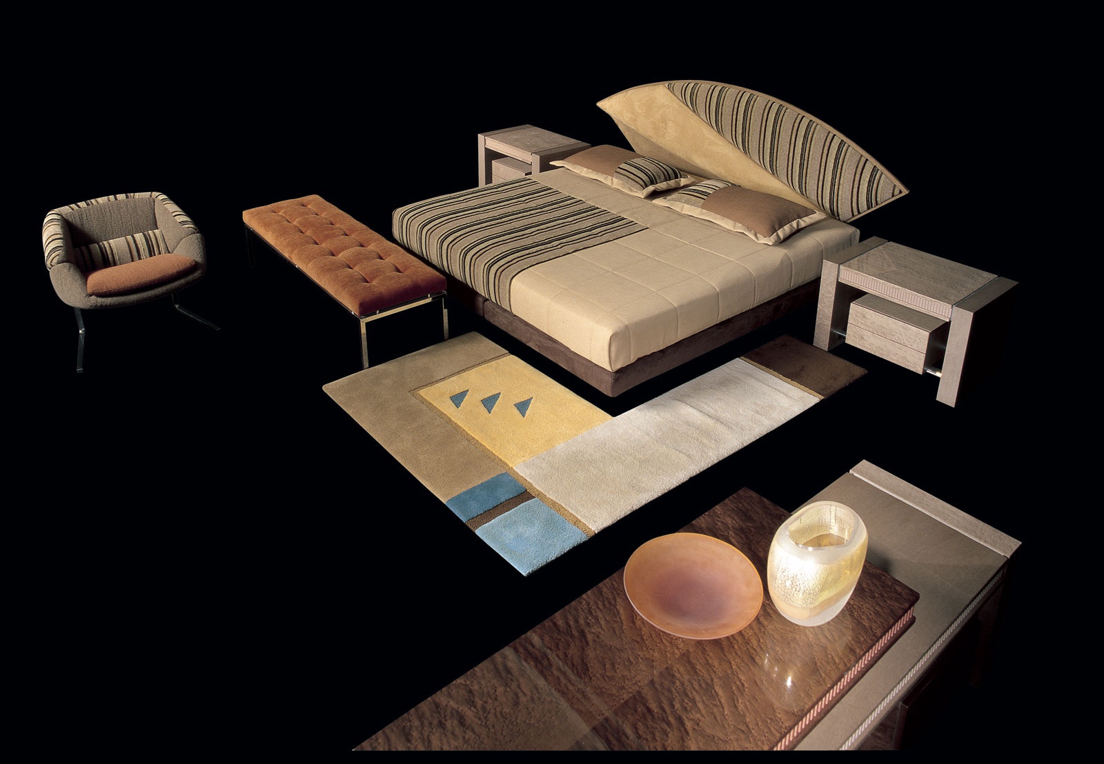 Double bed Ginevra by Italian manufacturer Il Loft. Model with high headboard. The frame is made of wood and metal. Legs steel surface - glossy chromium. Upholstered in textile or leather. Filled with non-deformable polyurethane foam and polyester fibers. Modern design work with a large range of combinations of colors and textures.