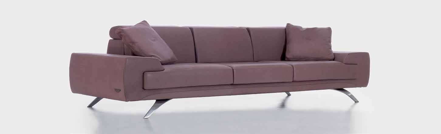 Three-seat sofa V034 from the Italian manufacturer Formitalia. The model collection Aston Martin. Metal frame made of aluminum. Upholstery - leather from the company portfolio. Offers a wide range of colors.