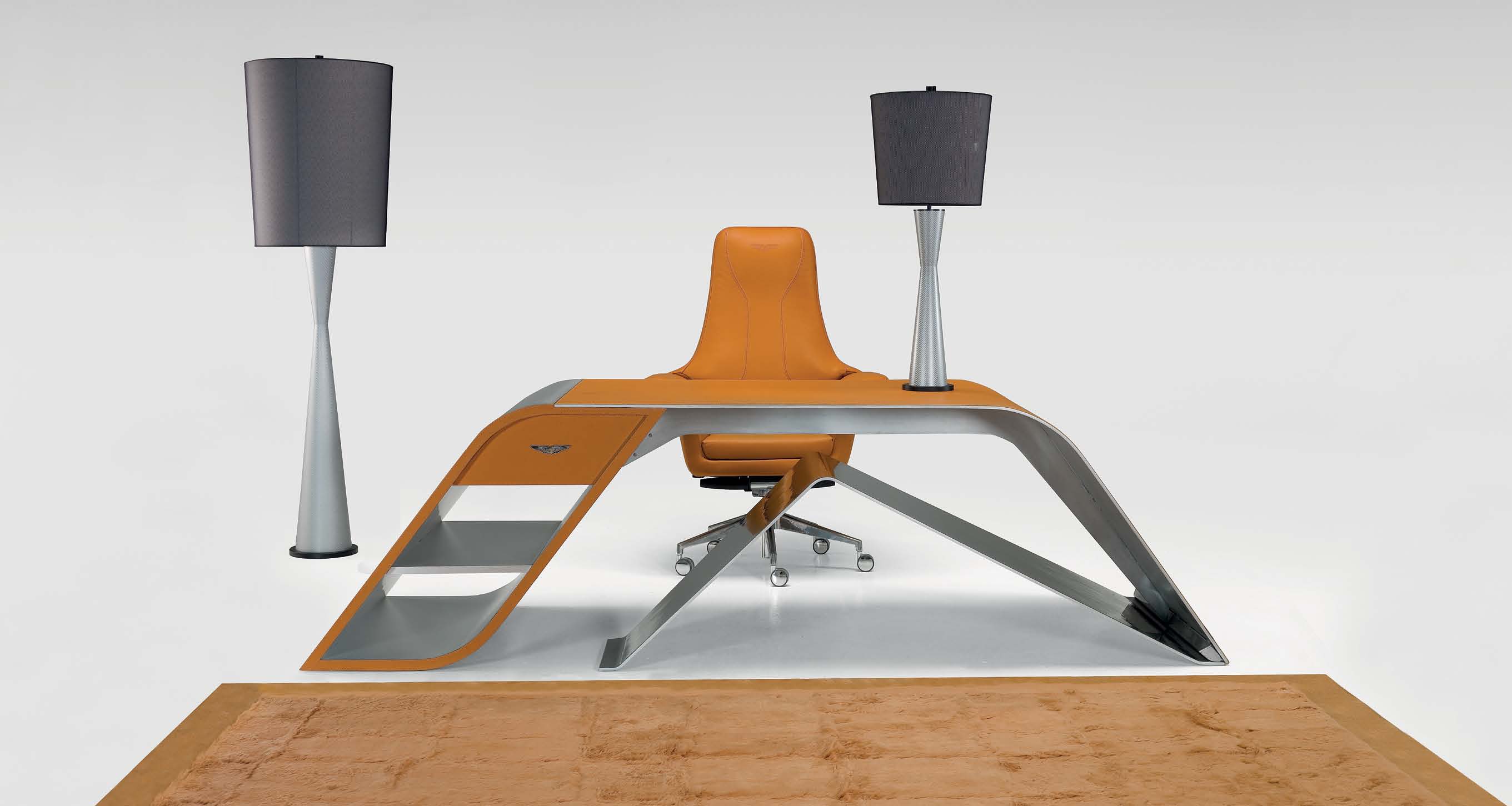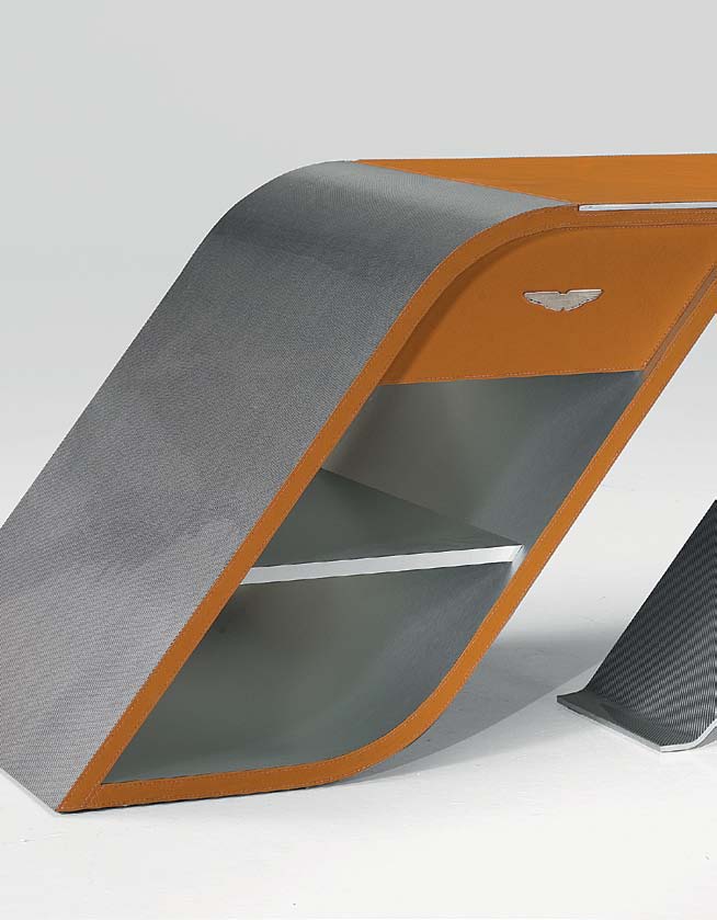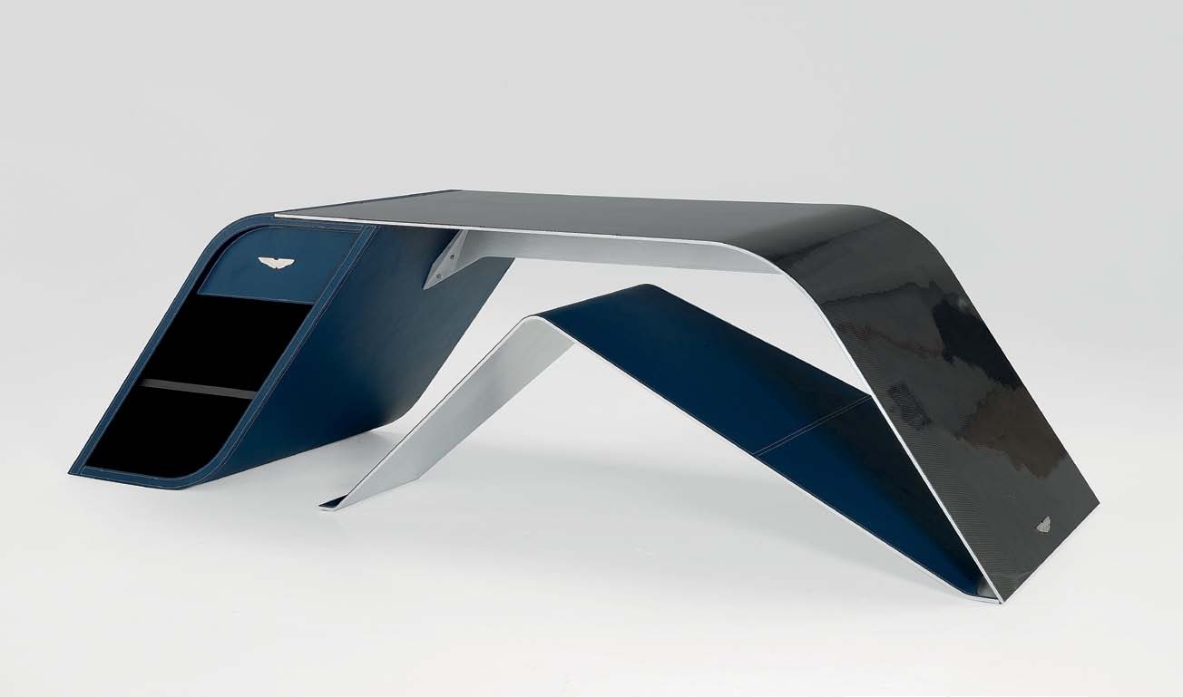 Desk V004 from the Italian manufacturer Formitalia. The model collection Aston Martin. Wooden table top, base made of aluminum. Trim - leather, from the company portfolio or carbon. Offers a wide range of colors.
