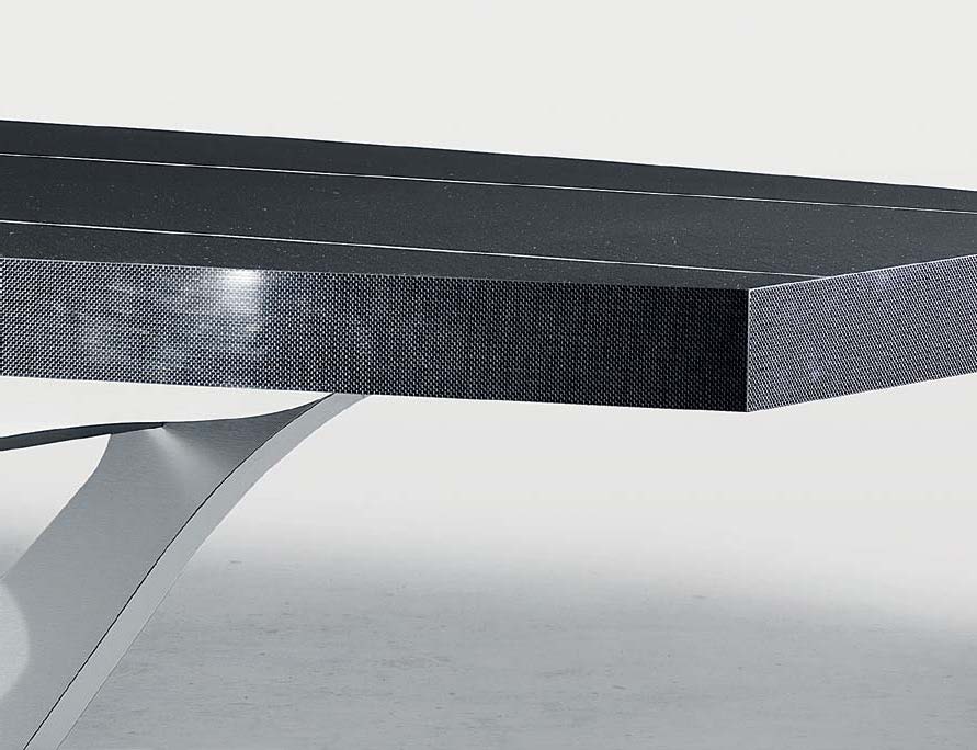 | Description: | V026 dining table from Italian manufacturer Formitali. Wooden countertop in glossy finishing of carbon fiber (without aluminum inserts). |