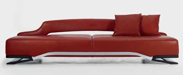 | Description: | Four-seater sofa V055. The frame is made of aluminum. Legs made from metal, lacquered in black. Front panel metal. Upholstery - leather Skin Garnet, garnet in color. Finish on the photo. |