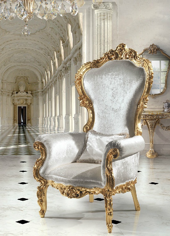 Chair with high back and rounded armrests from the Italian manufacturer Angelo Cappellini. The frame and legs are made of wood and richly decorated with carvings. Finish - company directory. Upholstery textiles. The color and texture of the upholstery from the assortment. Luxury model for the interior in classic style.