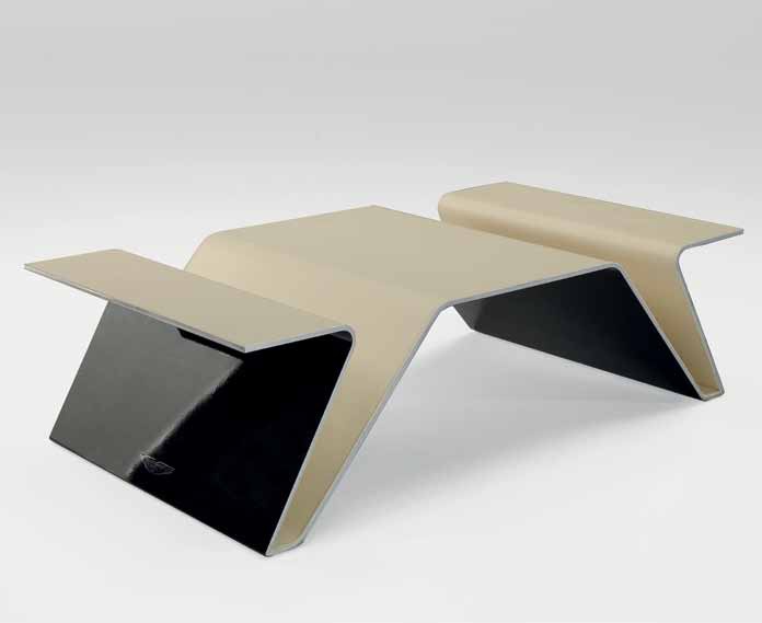 | Description: | Coffee table V005 (table 2 sides) on a frame of aluminum. Upholstered in leather Seta Talpa. Color is beige. Trim - carbon fibre, glossy finish. |