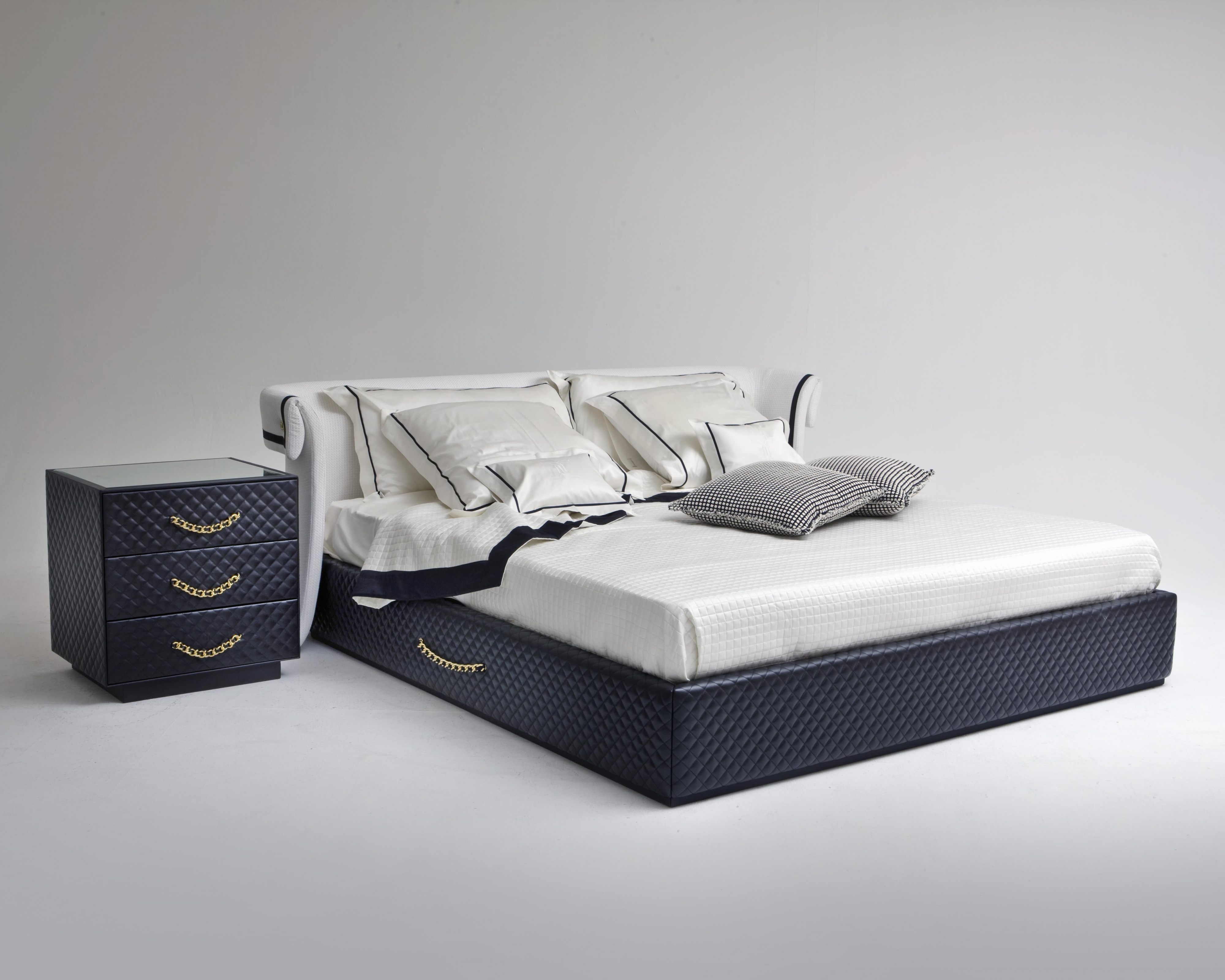Double bed Rue de Charonne from Italian manufacturer Colombo Stile. The frame is natural wood. Ieather. The model is made in modern style. Colours in stock.
