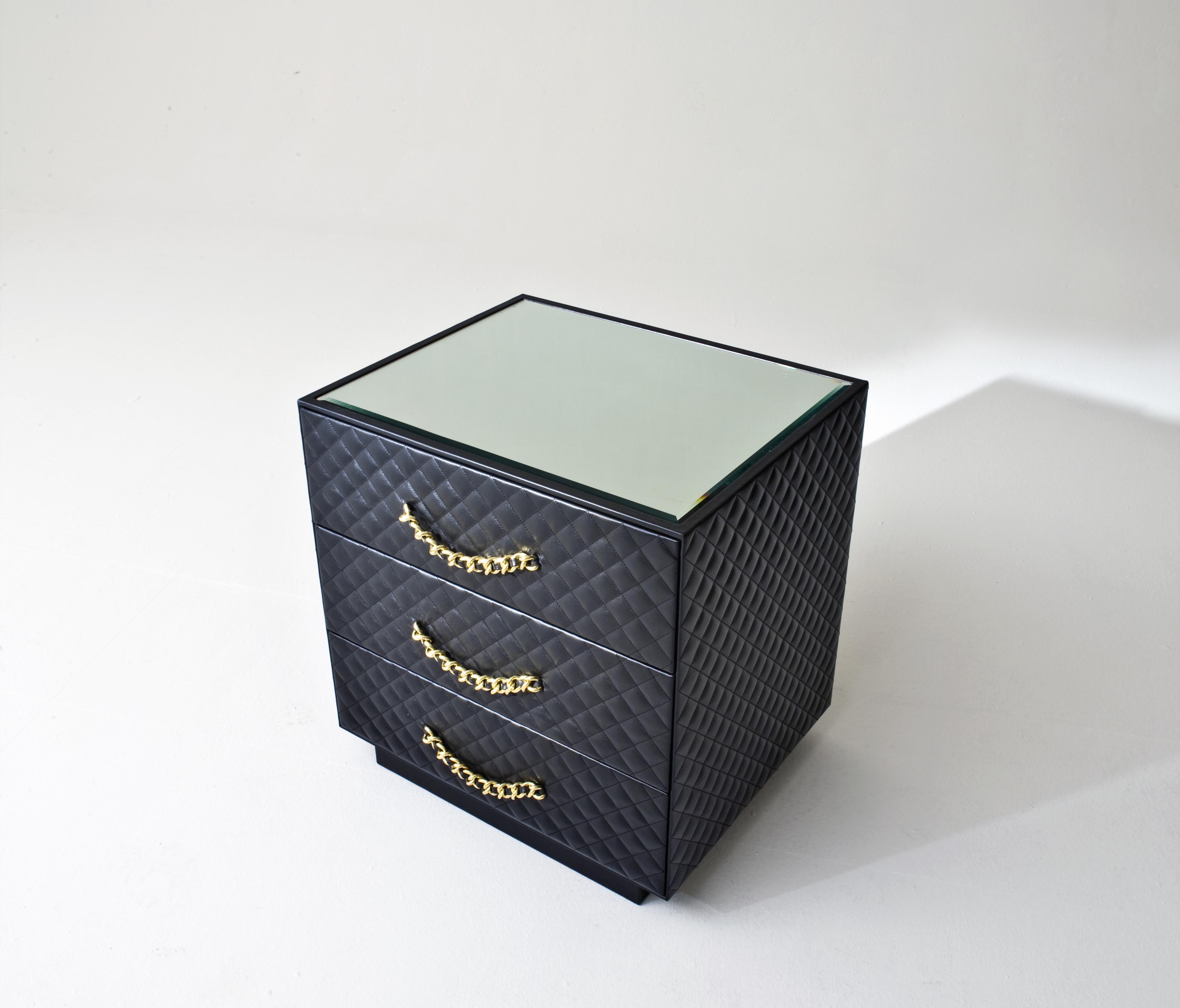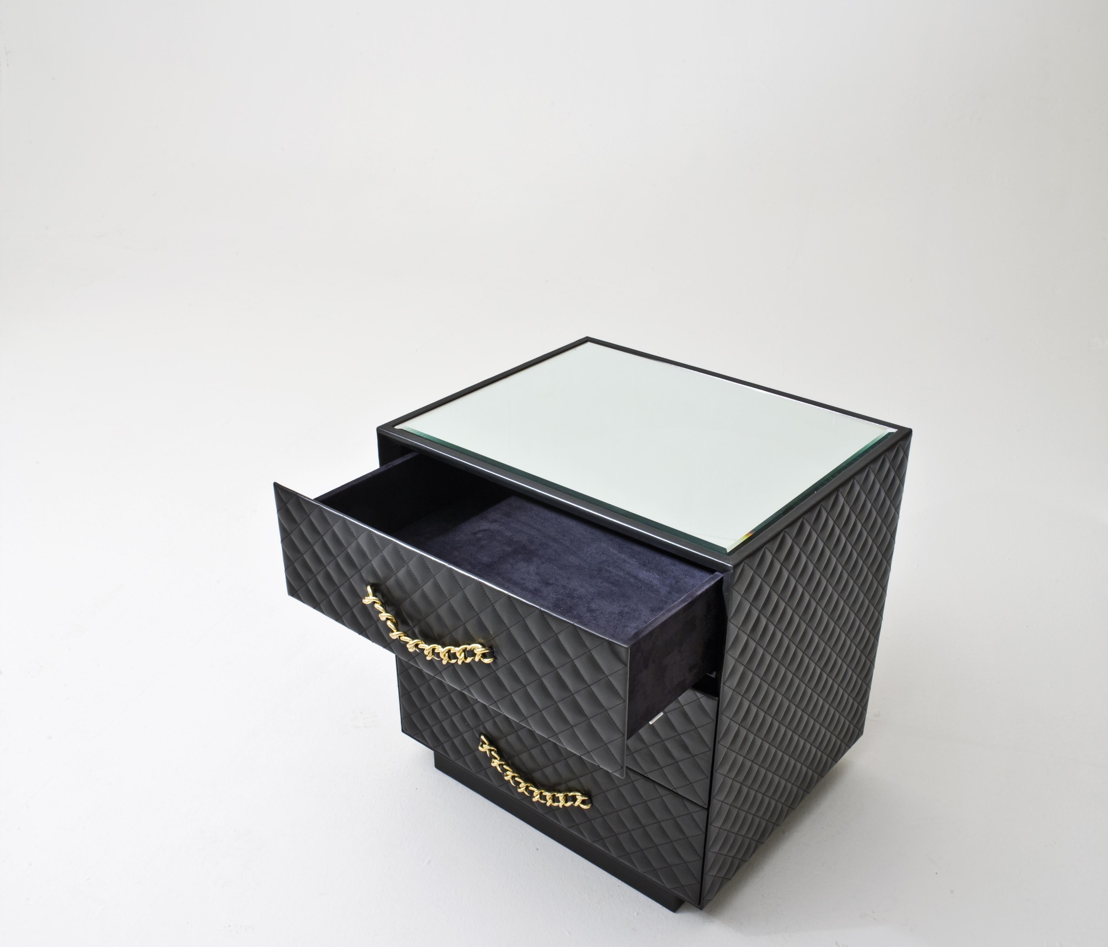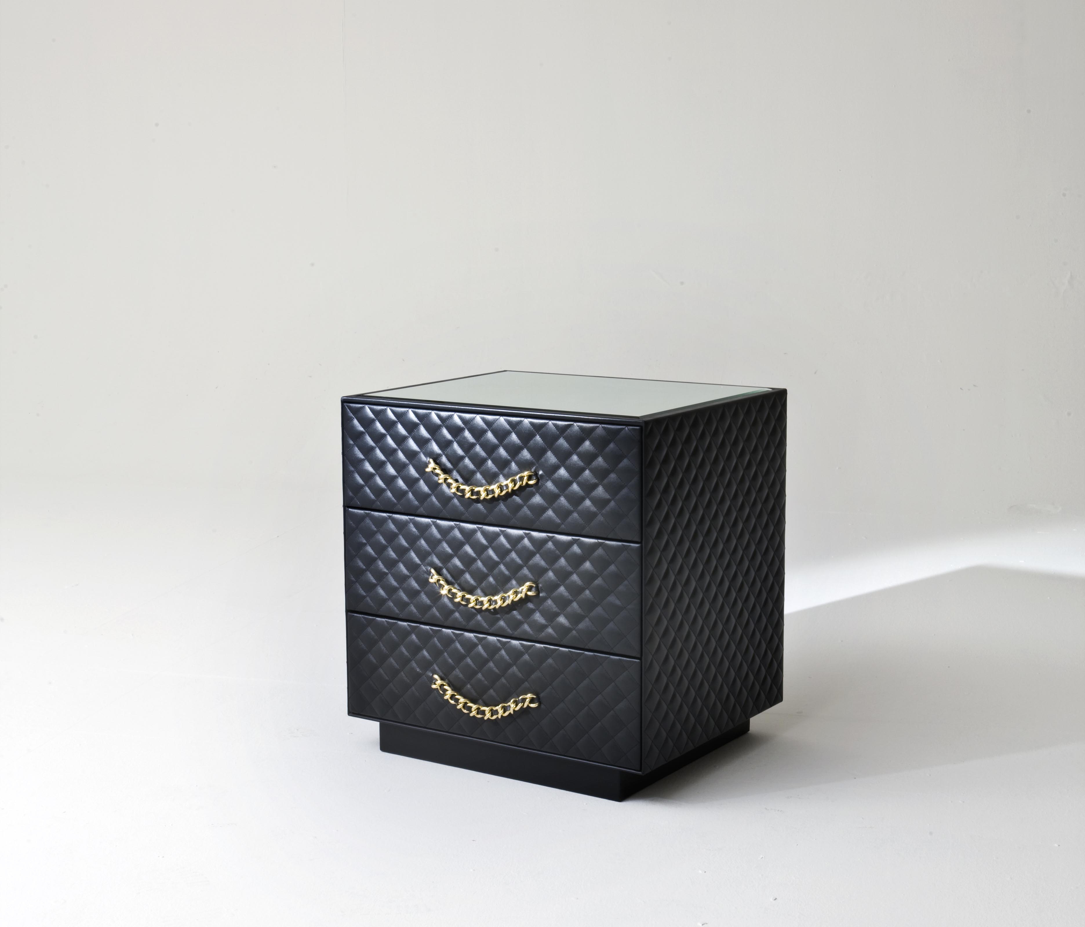 Bedside table from Rue de Charonne Italian manufacturer Colombo Stile. The case is natural wood. Ieather. The style is modern. Model with drawers. Colours in stock.