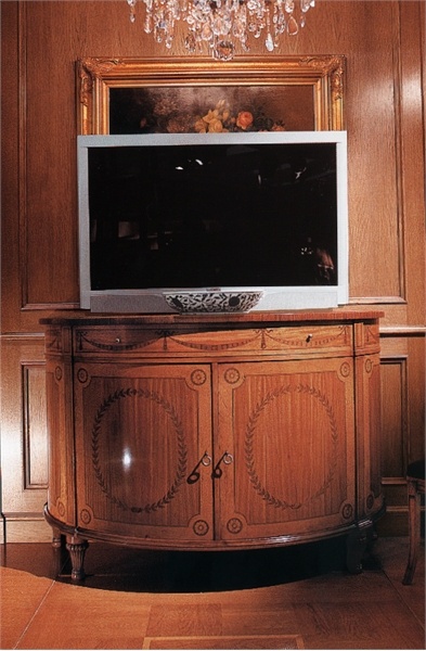 Cabinet for TV from the Italian manufacturer Provasi. Frame cabinets made of solid wood. Veneer made of exotic tree species. The color of this model cabinets - natural wood color.