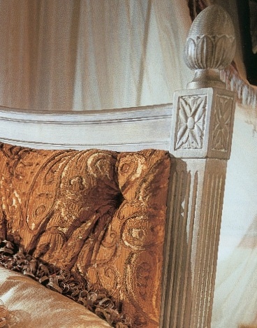 Double bed from Italian manufacturer Provasi. Bed frame made of solid wood and the upholstery is presented in a textile form. The color of this model, the bed - light.