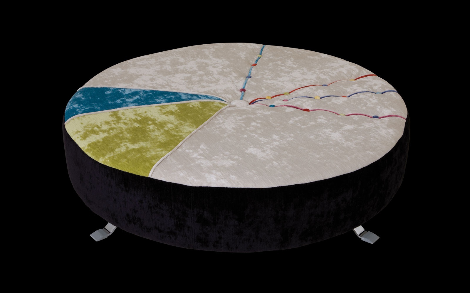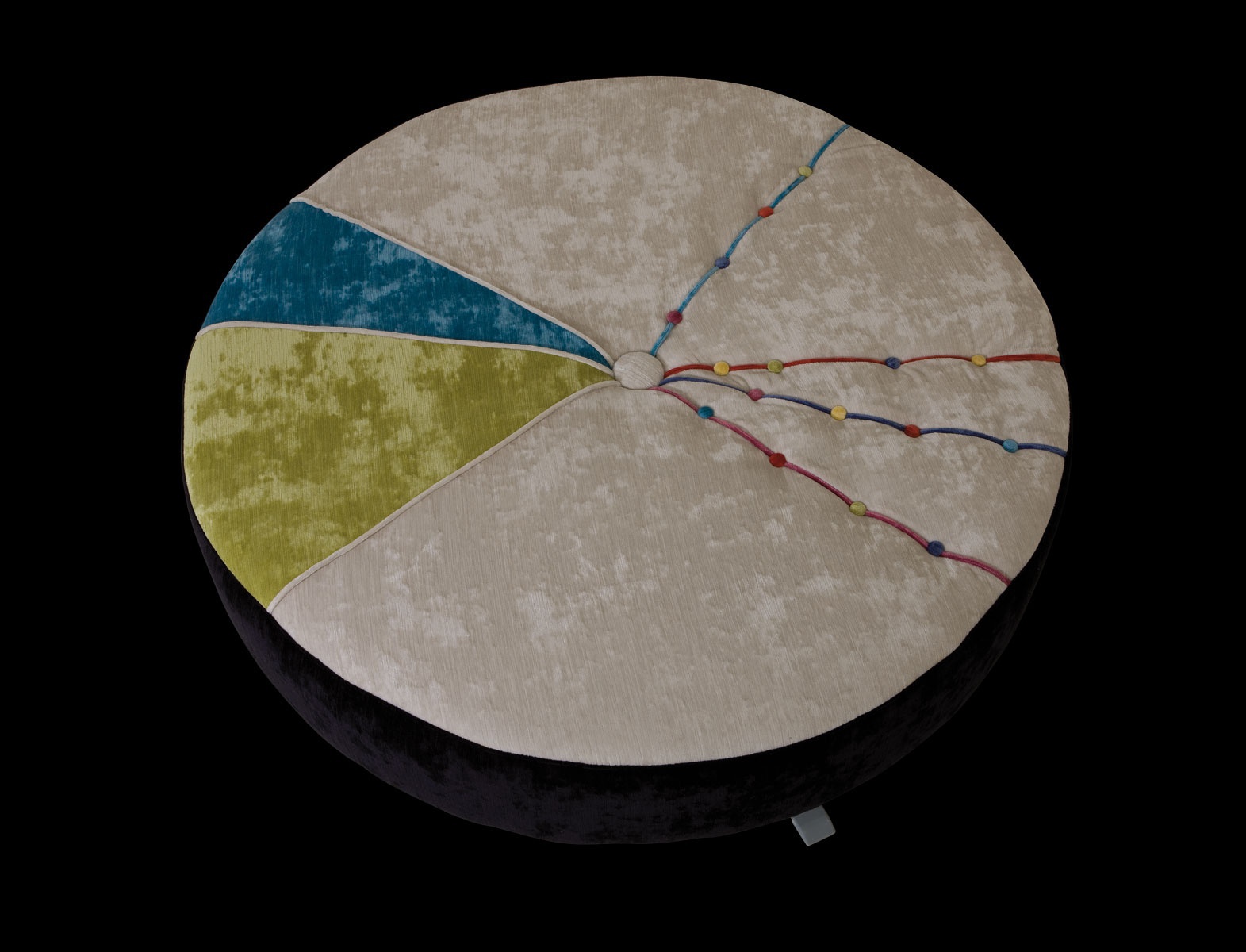 Poof Constellation from the Italian manufacturer ll Loft. Model round legs chrome steel frame with wood. The upholstery is of leather or textile. Filled with non-deformable polyurethane foam. Option color and texture to choose from a collection company. Model of modern design.