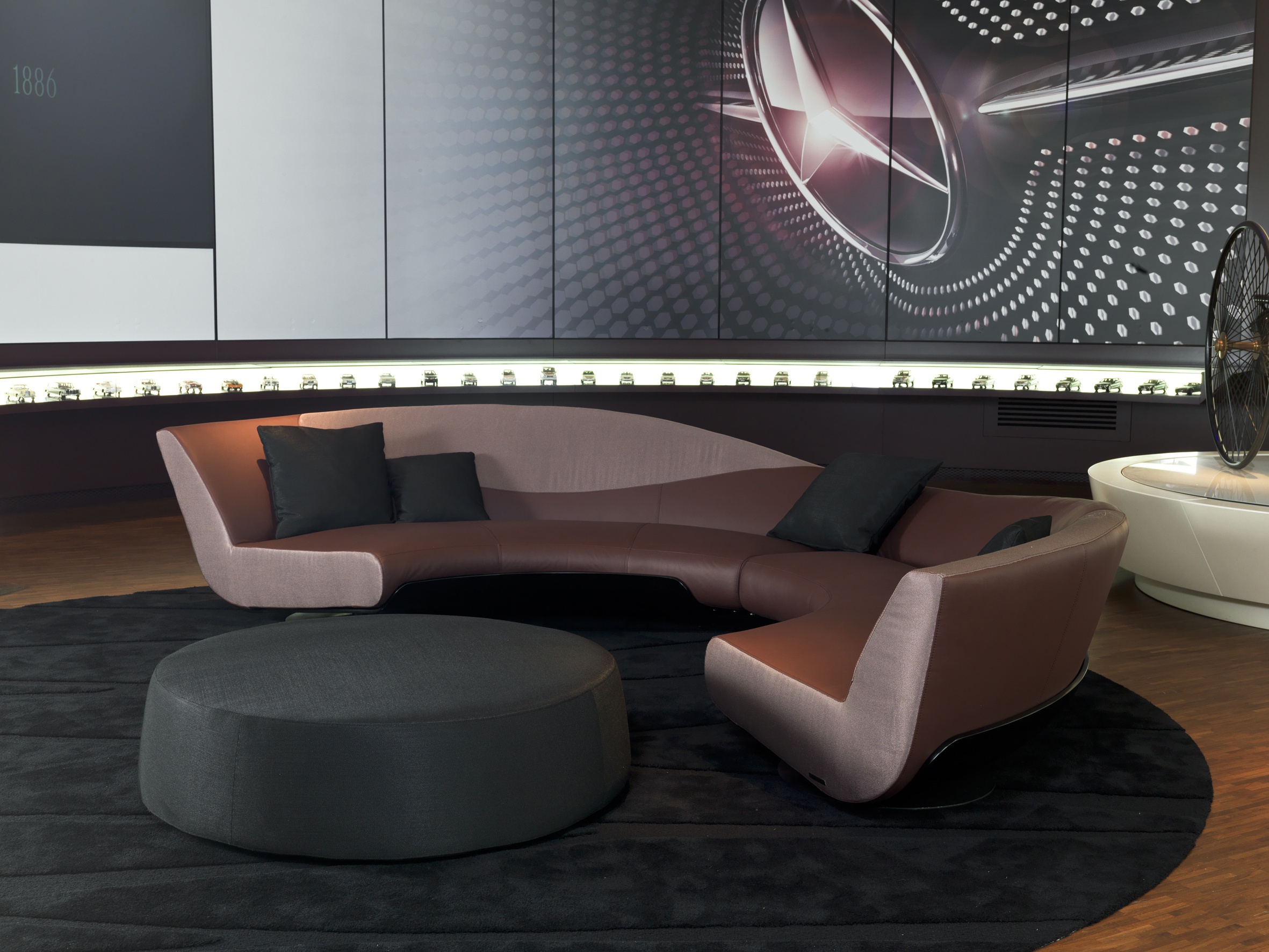 The MBS 009 sofa sectional from Italian manufacturer Formitalia. Model of the collection Mercedes-Benz Style. Wooden frame, legs are made of aluminum. Upholstered in textile or leather from the company portfolio. Offers a wide range of colors.