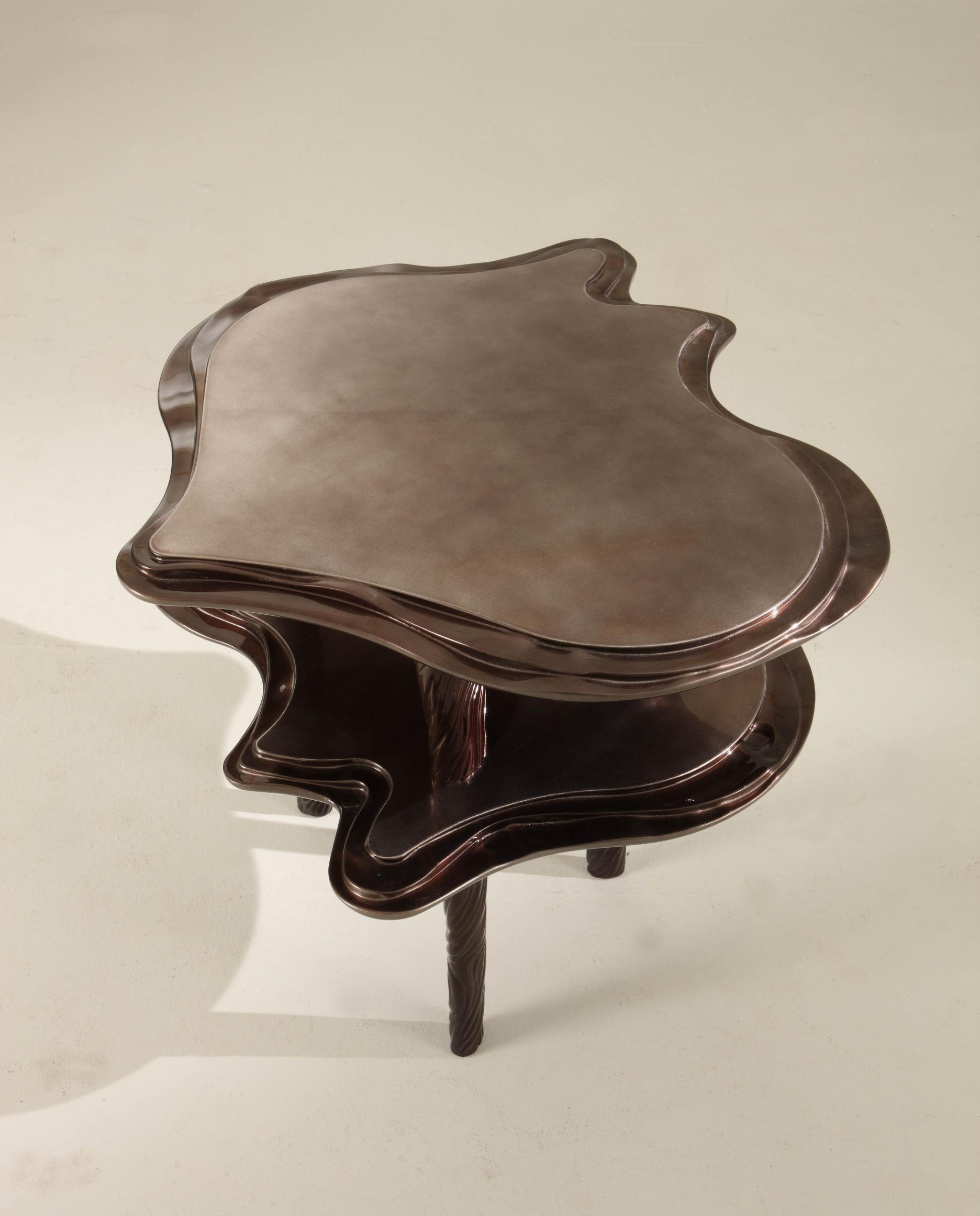 Smoke coffee table from Italian manufacturer Colombo Stile. Finish - gloss lacquer. Legs, table top - natural wood. The model is made in modern style. Colours in stock.